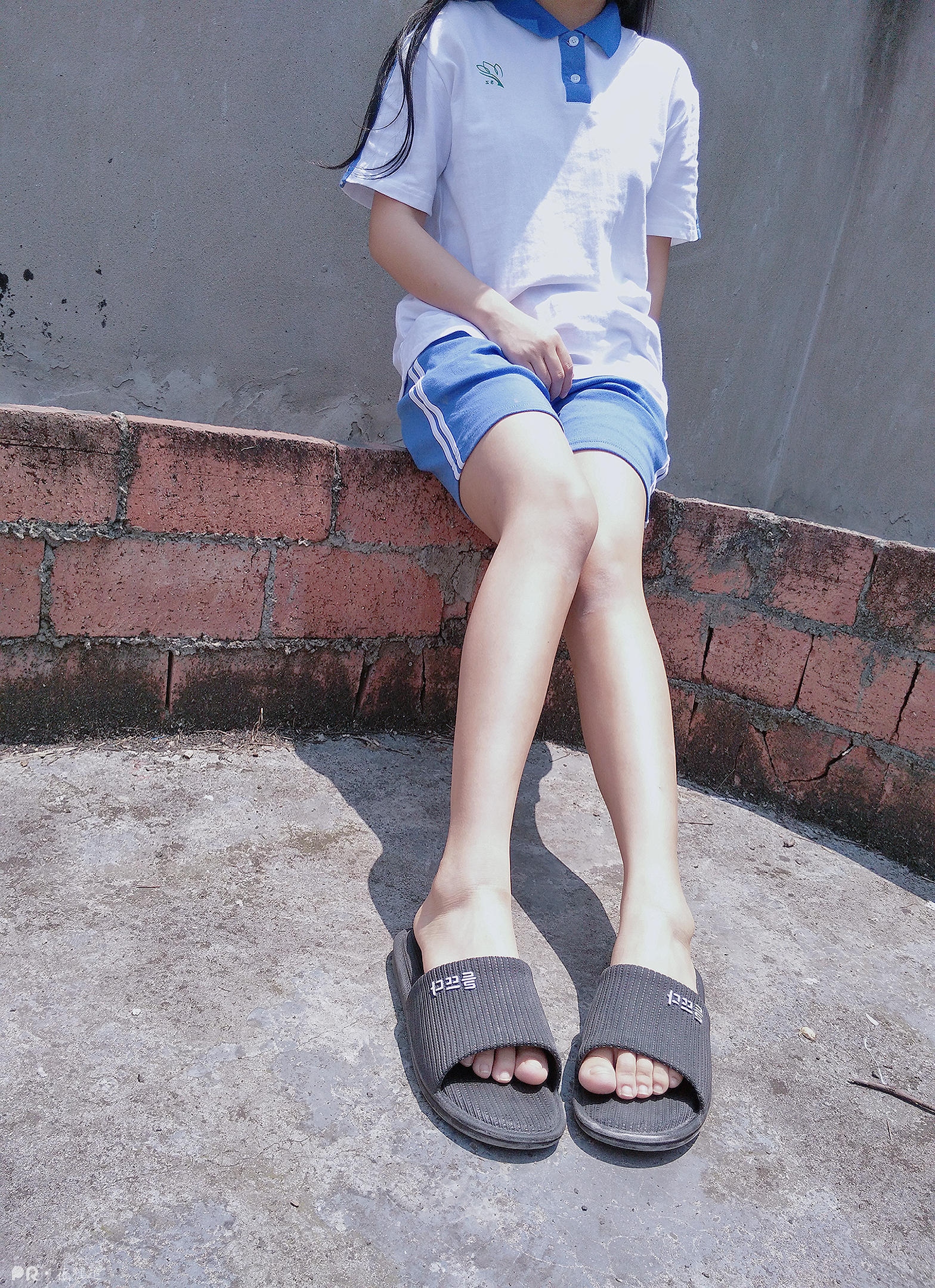 楼梯里的萌萌哒校服少女