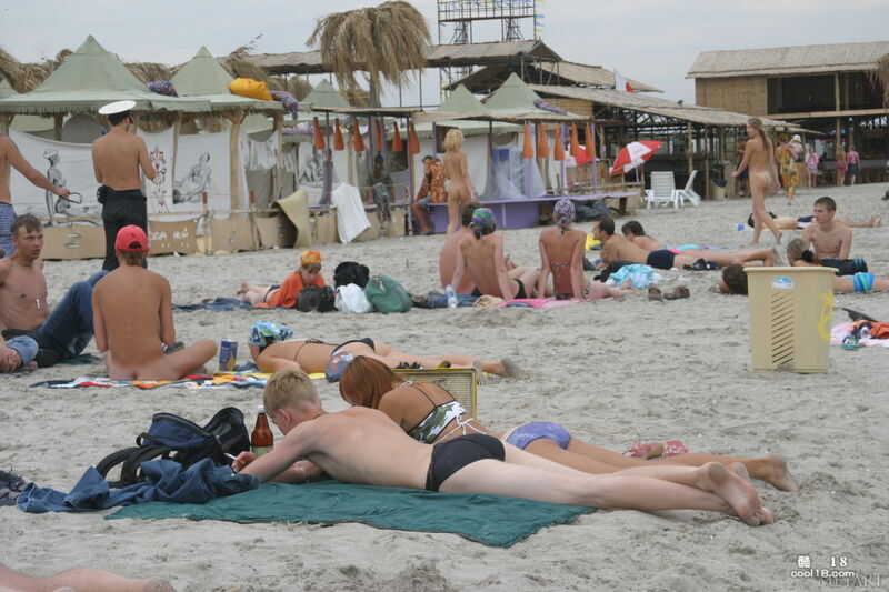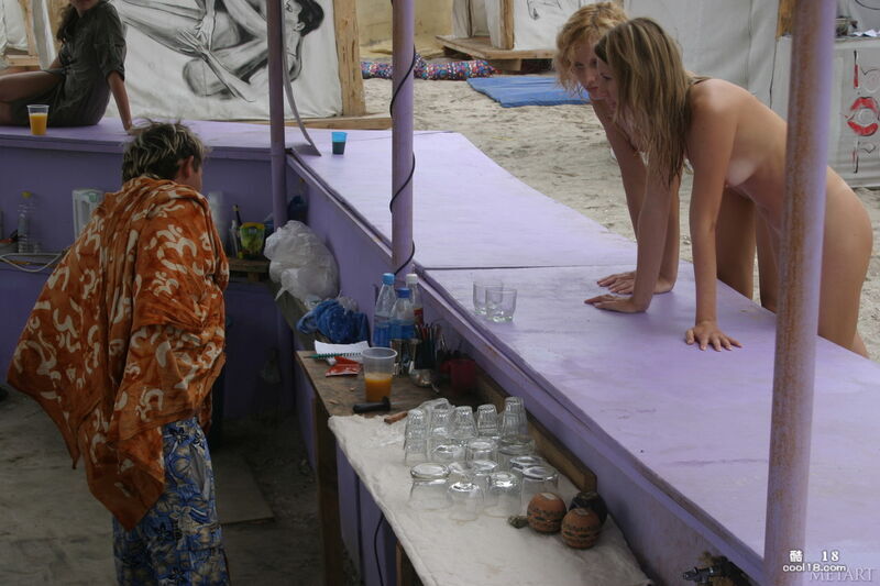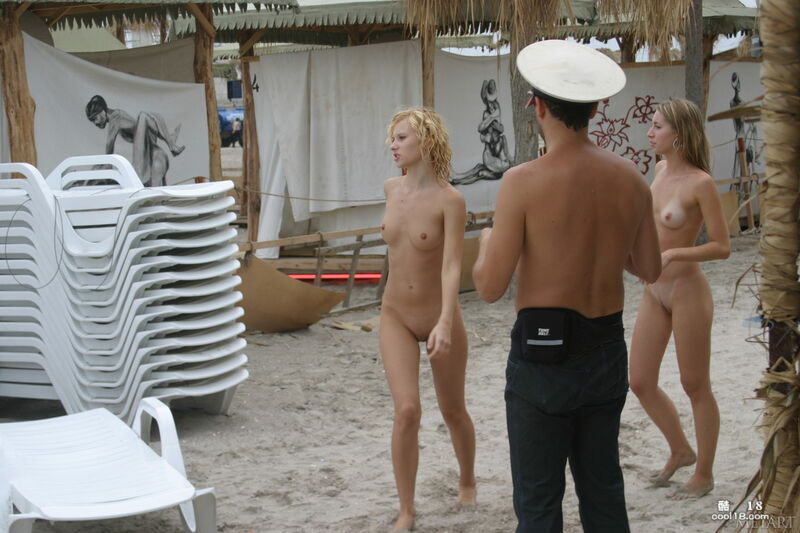 美丽的少女们在天体海滩上展现的诱人的裸体并晃荡着奶子