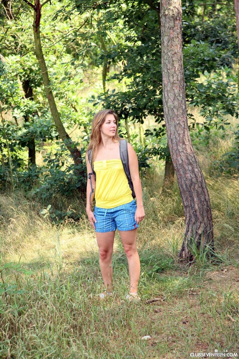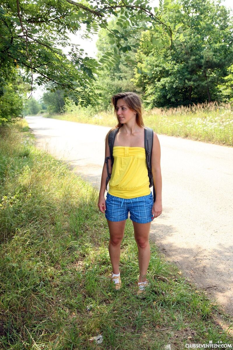 淫荡的白人少女 Bella E 在树下自慰后赤身裸体行走在路上