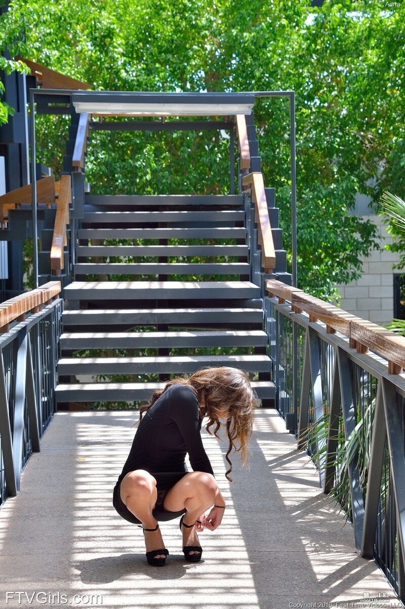 苗条的白人少女 Adria 在户外脱衣玩弄黄瓜和大橡胶假阳具插自己的小穴