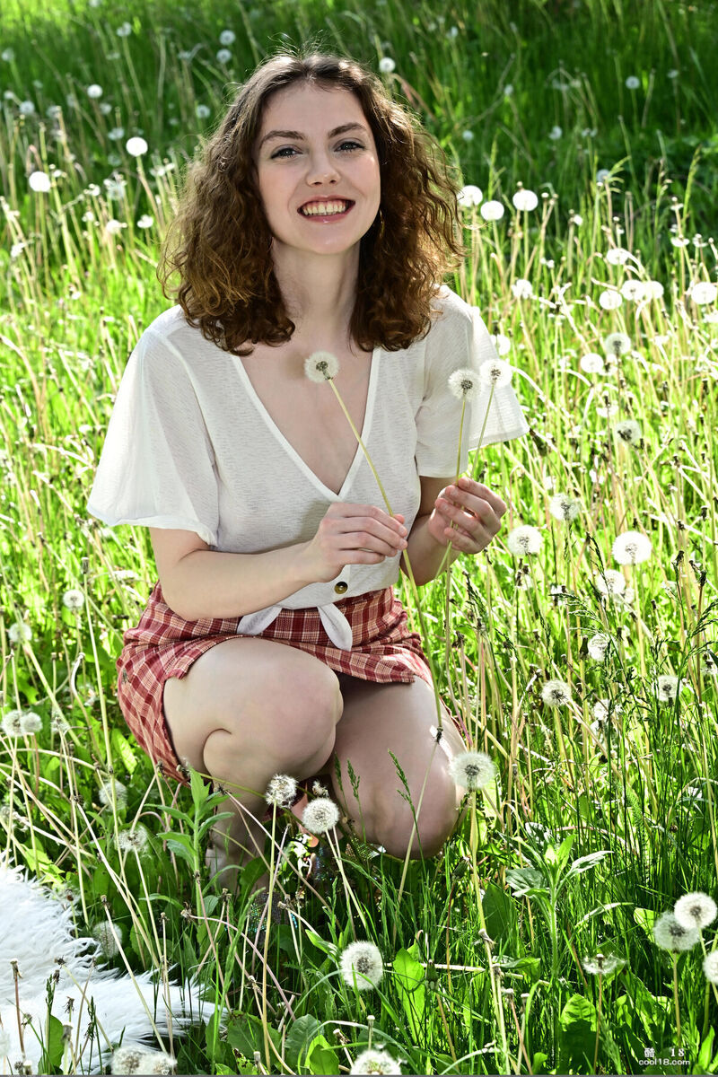 棕发美女在树林里露出了她的乳房和剃光的阴部