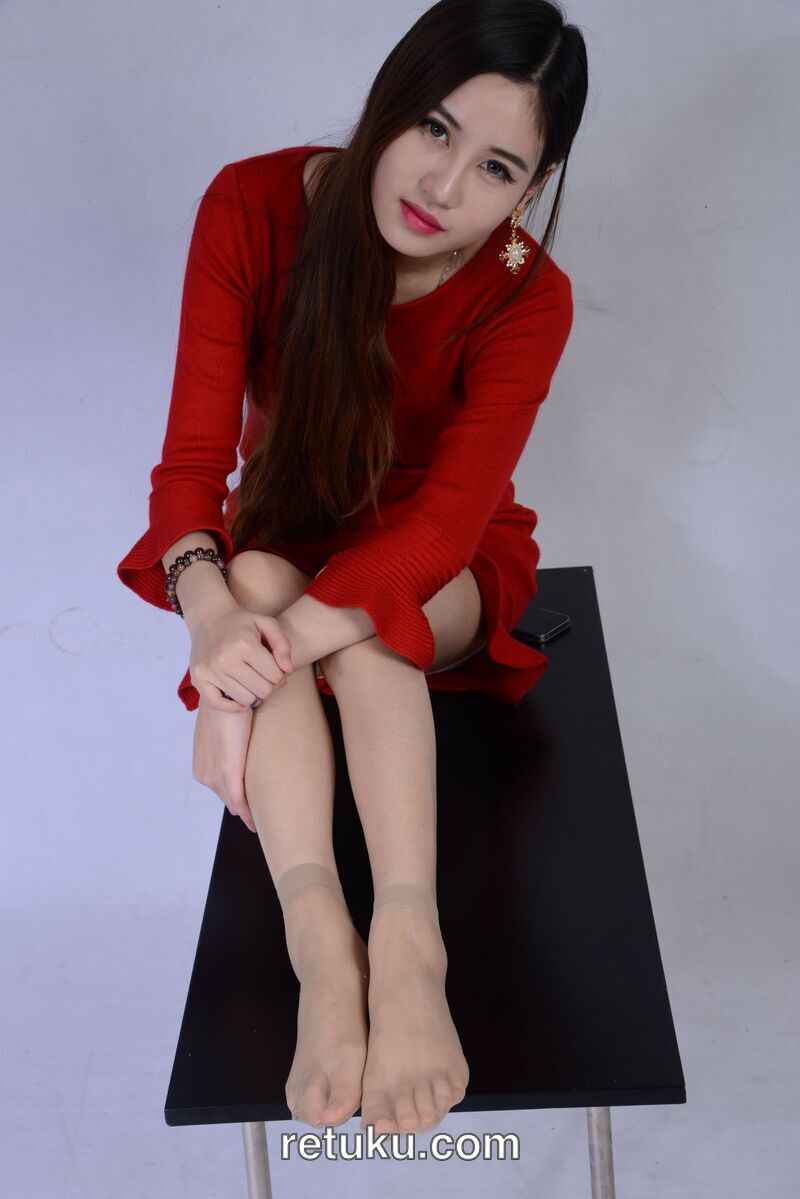 红色包臀裙短丝