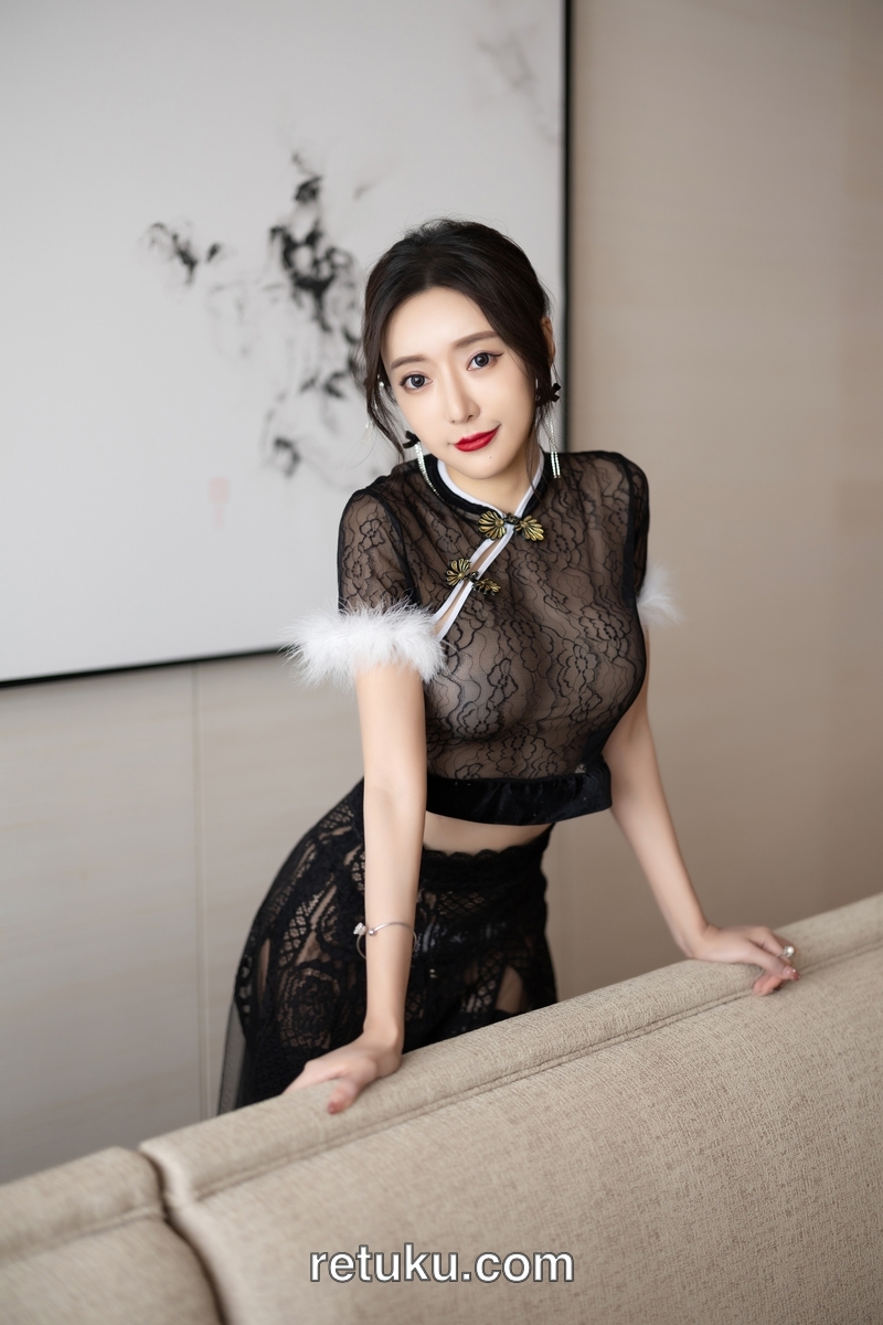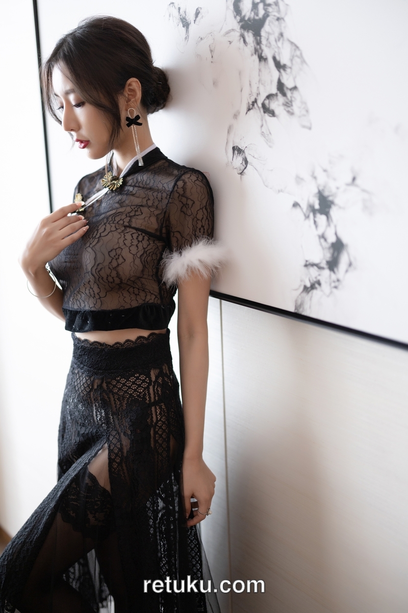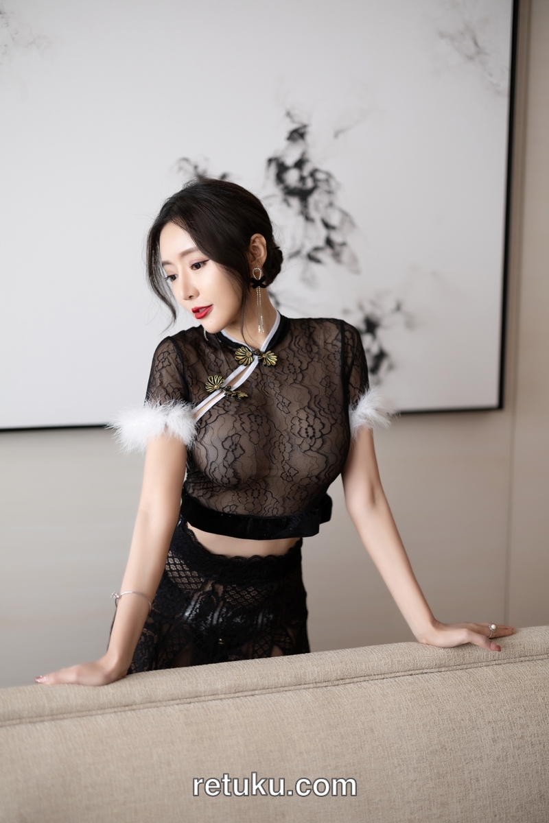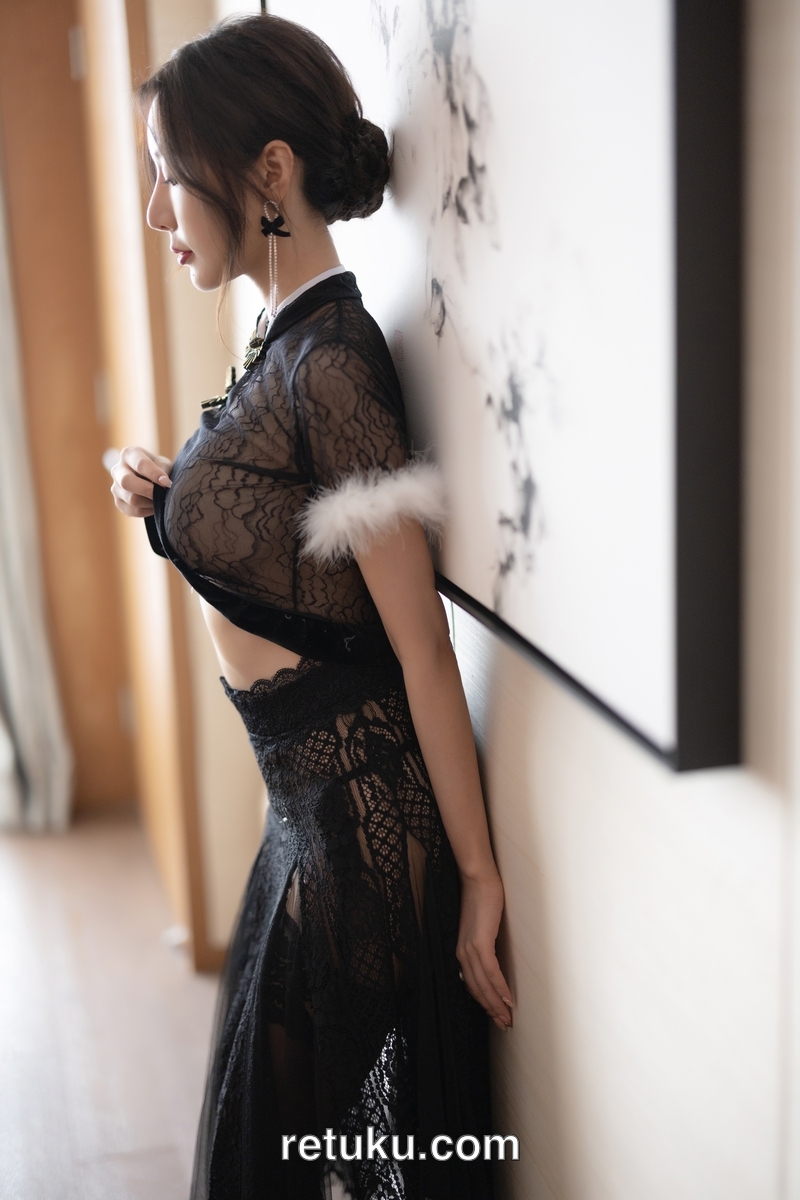 王馨瑶Yanni 内购无水印 黑色网纱毛毛旗袍 [90P672MB]