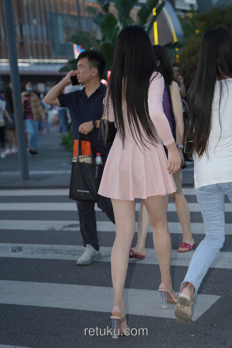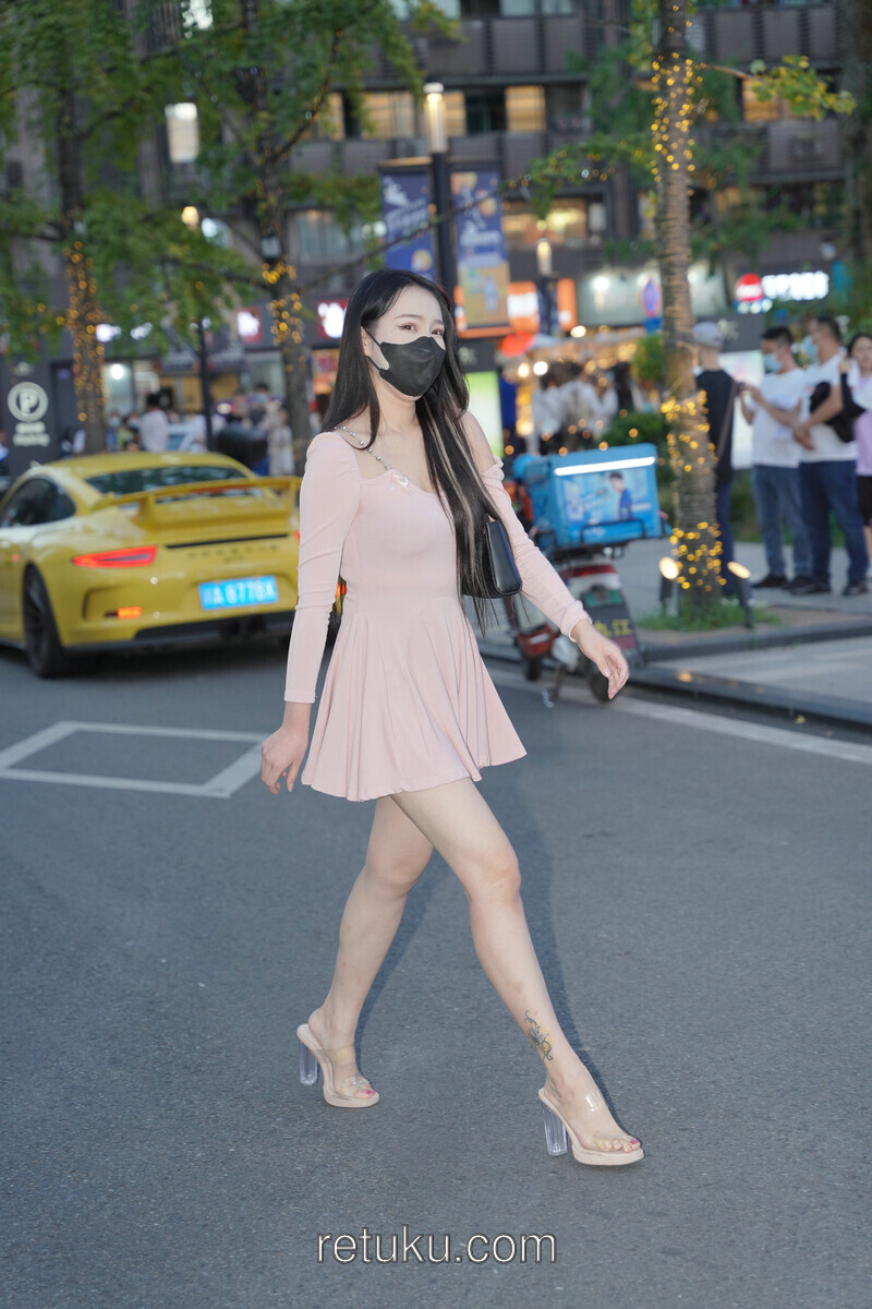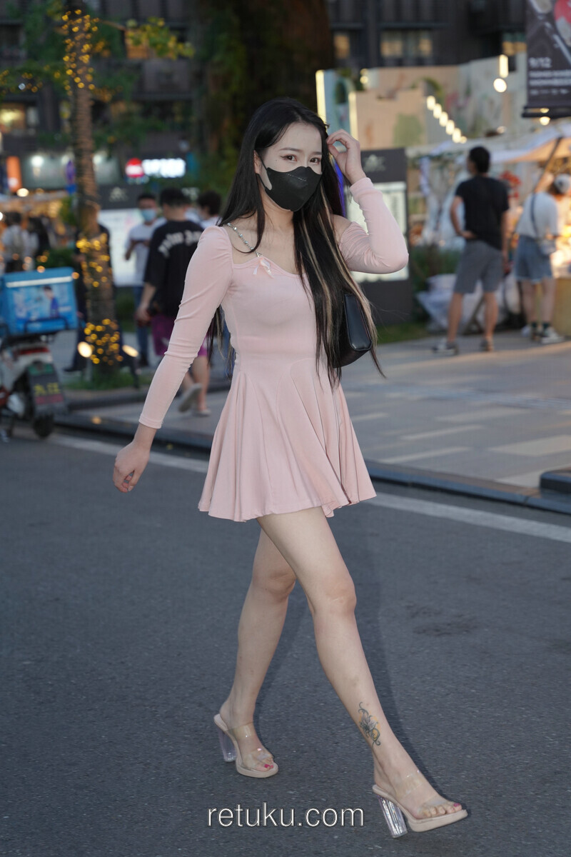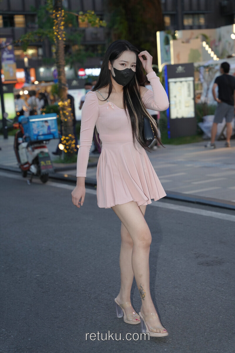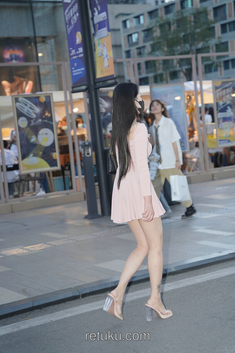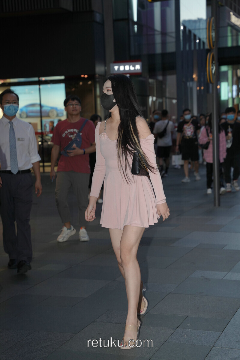 精选街拍 粉裙女神