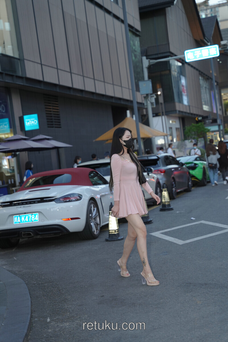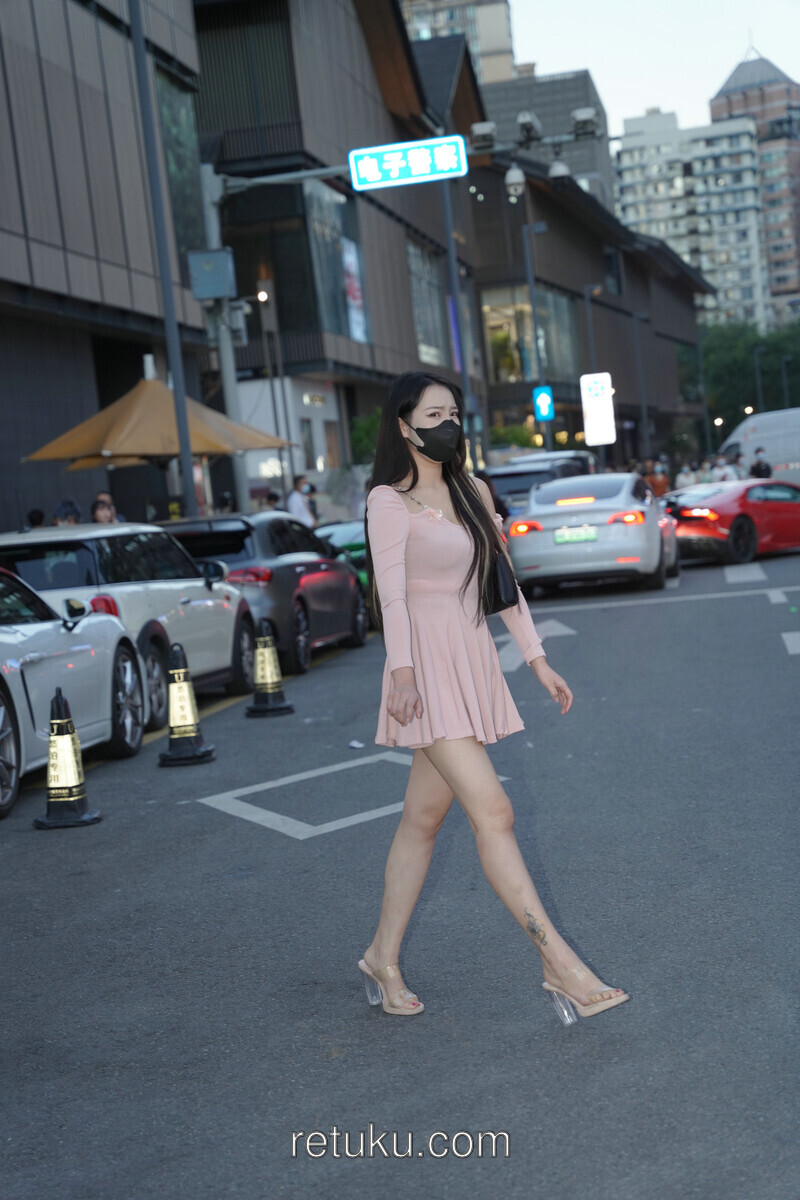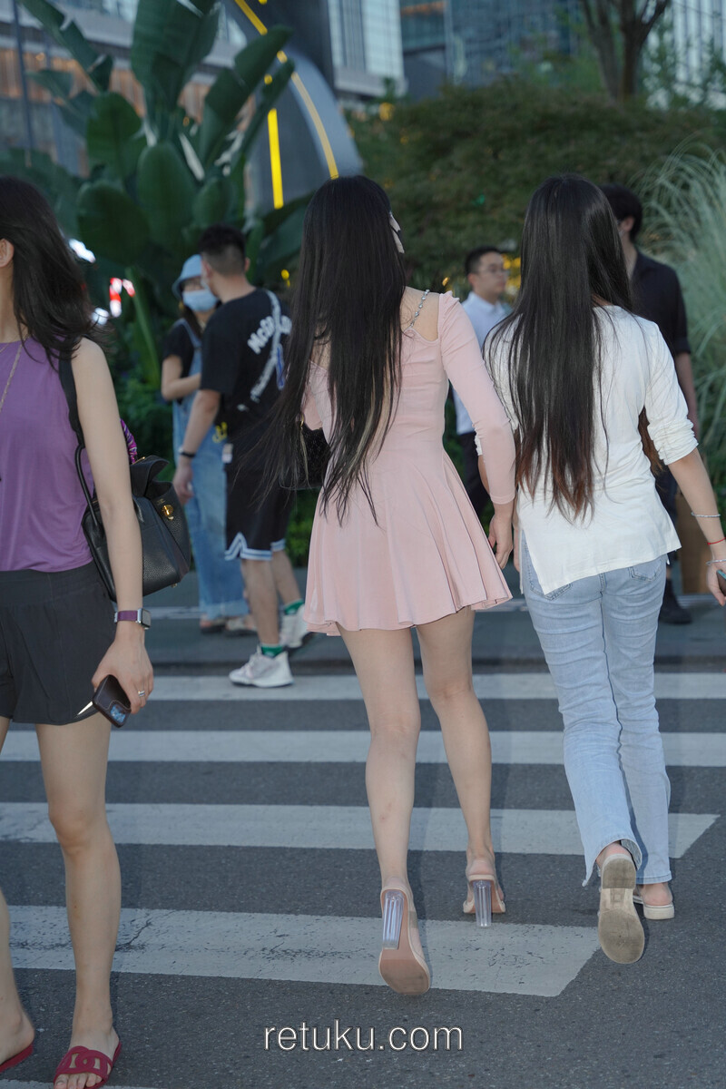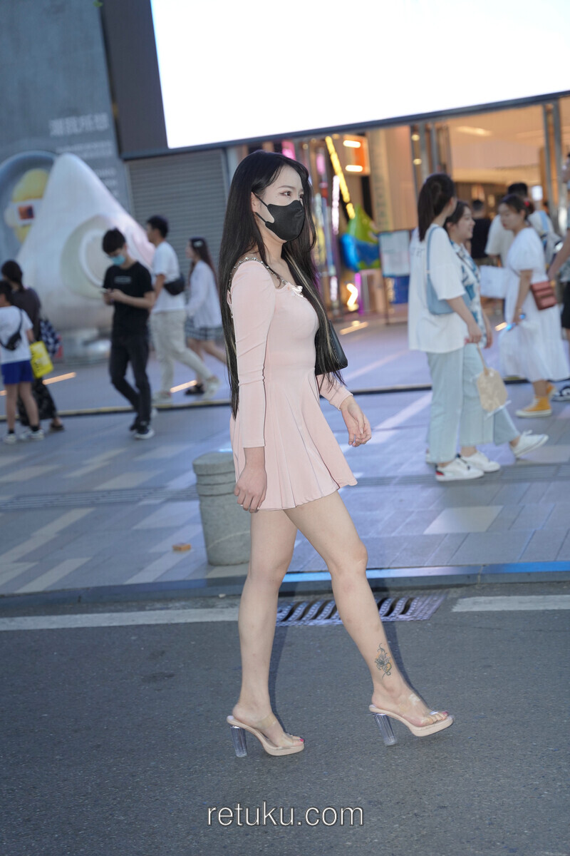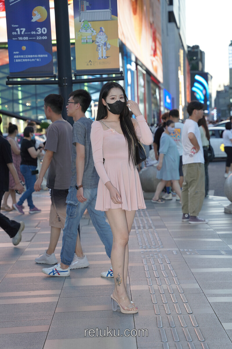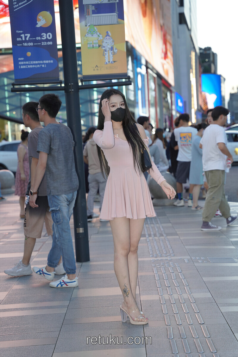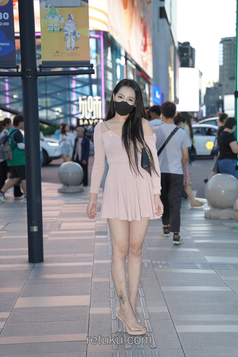 精选街拍 粉裙女神