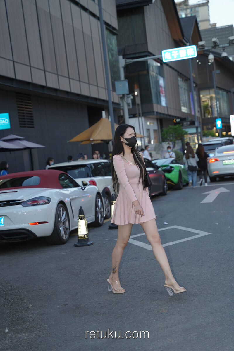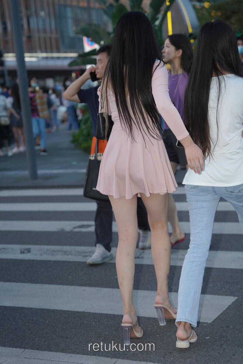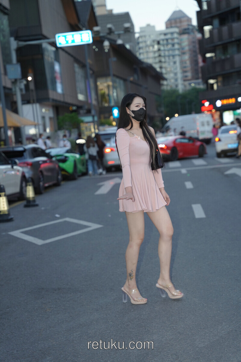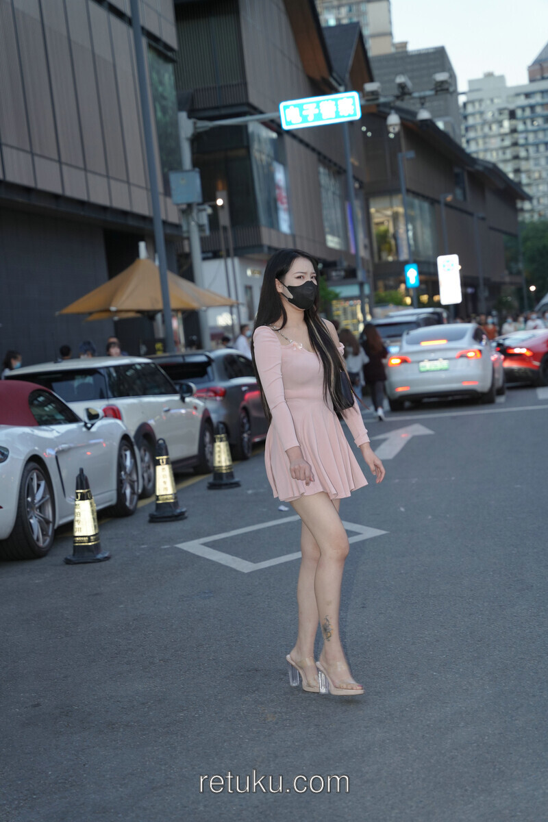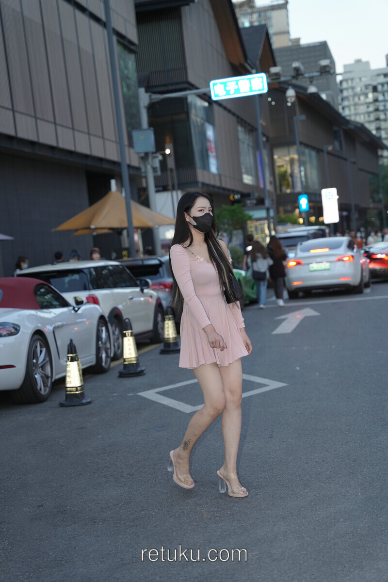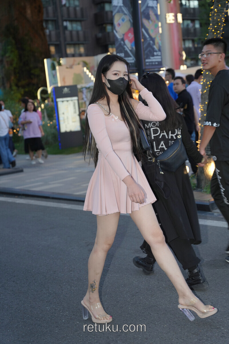 精选街拍 粉裙女神