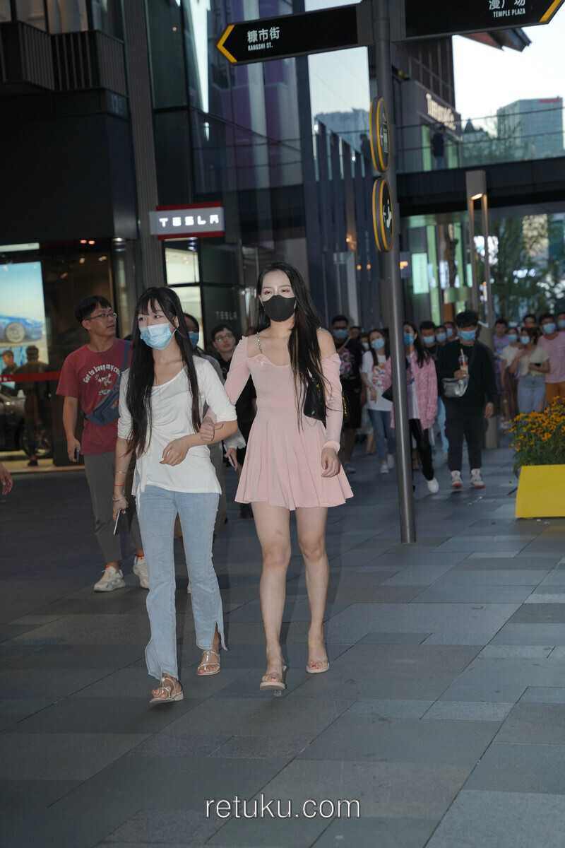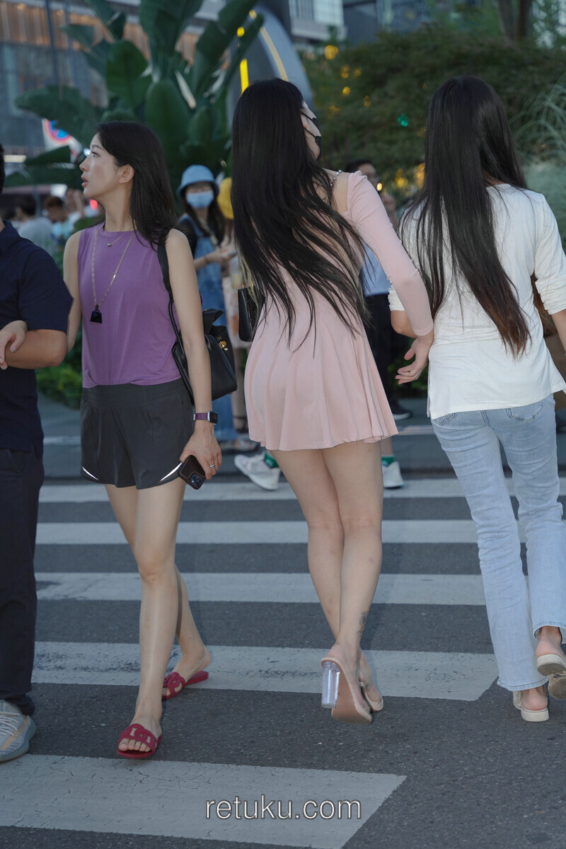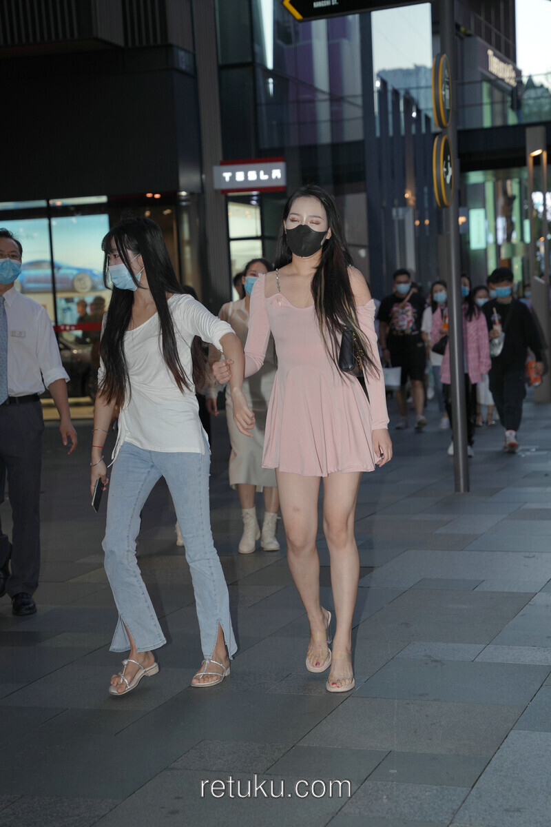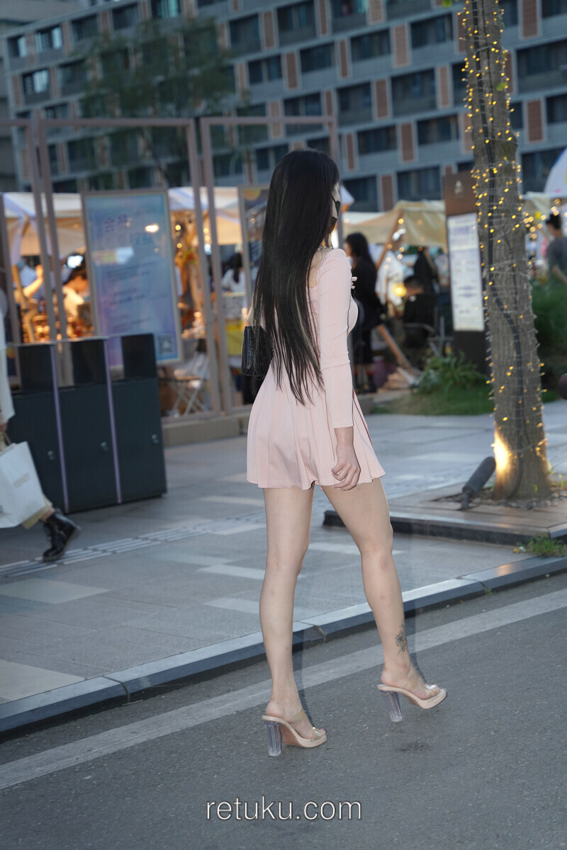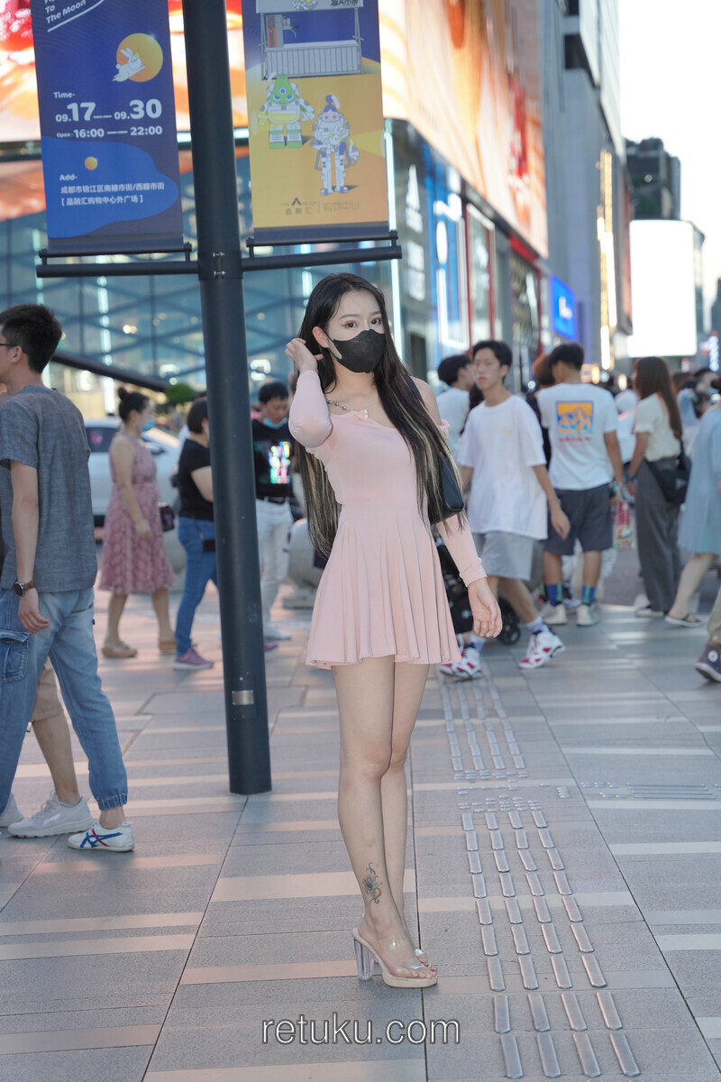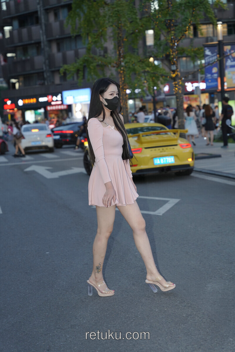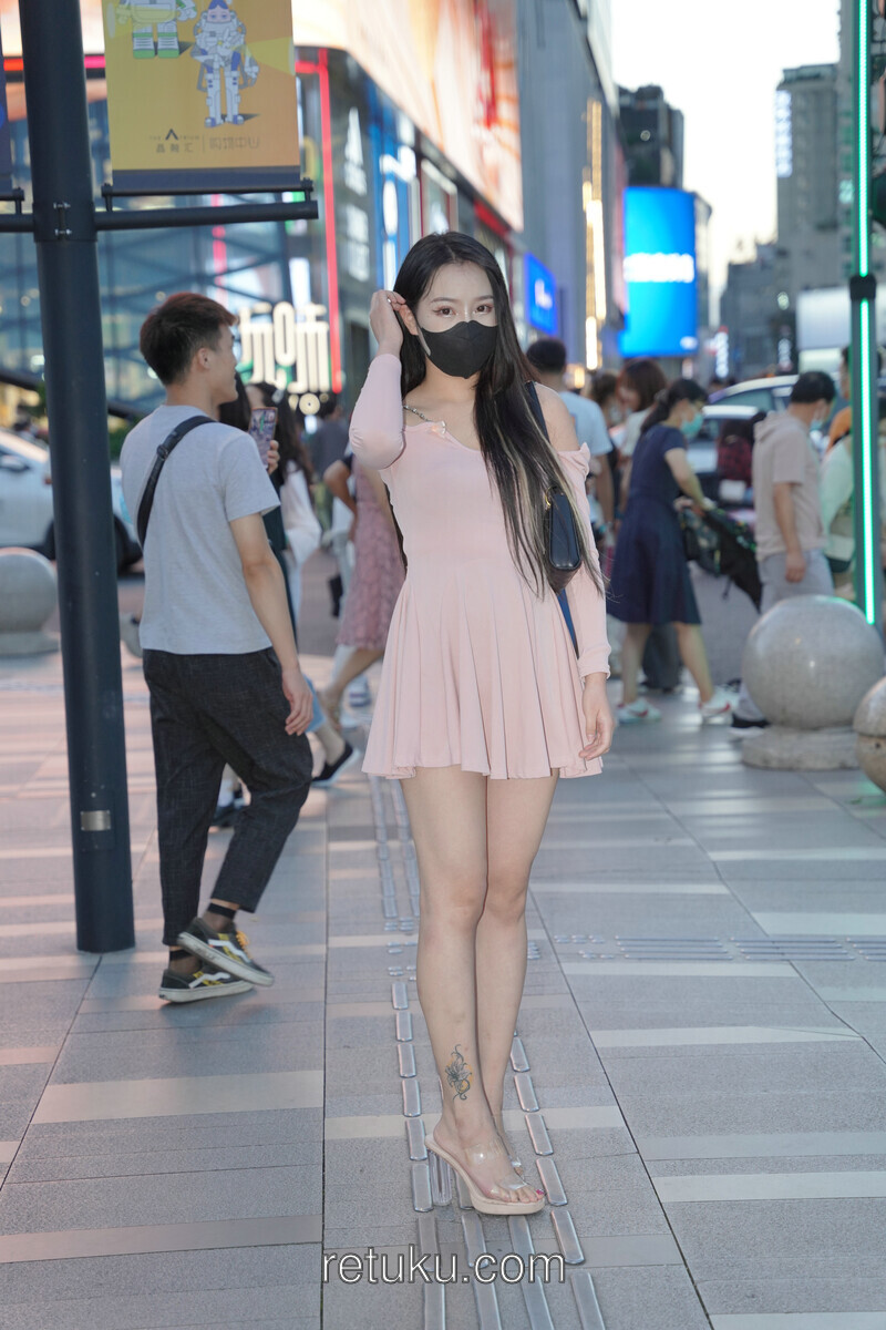 精选街拍 粉裙女神