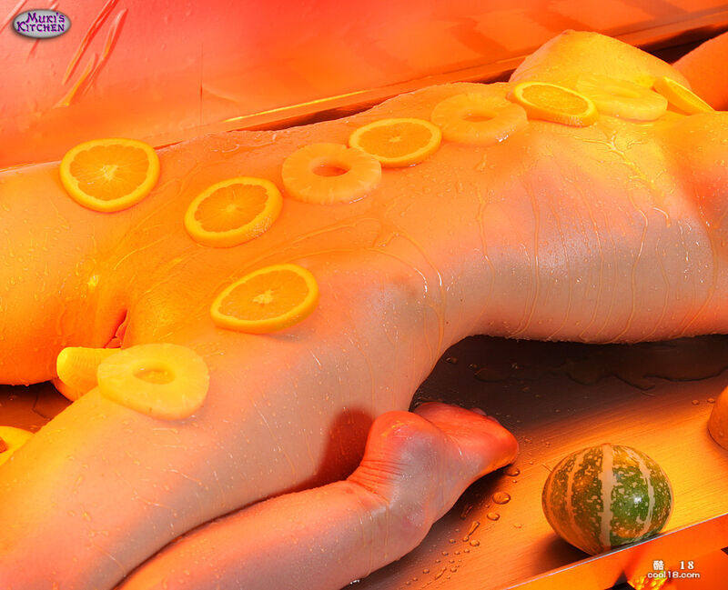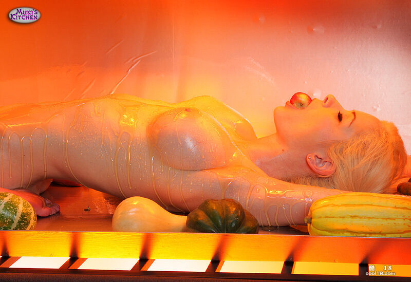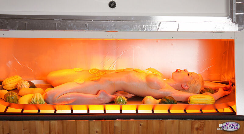 另类美味 - 金发大奶少女艾 Emily Addison 涂上油并装饰在烤盘上 ……