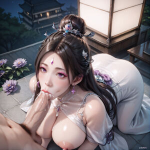 下午,她坐在秦天身上,一边扭动腰肢,一边为他口交,她的香舌灵活地舔 舐着敏感部位,喉咙深处发出压抑的呻吟,当她感到秦天快要到达极限时,她会 张开嘴,让他尽情释放。 晚上,她躺在秦天怀里,用一双玉手替他服务,她的手法温柔而富有技巧, 时而轻柔,时而有力,总能准确找到最能刺激秦天的位置,她的另一只手则抚慰 着自己的私密之处,嘴里不断发出甜腻的呻吟。 深夜,他们尝试了各种体位,有时是她坐在秦天身上观音坐莲,有时是被他 从背后进入,有时则是面对面坐着,每一次变换姿势都能带来新的体验。 每当秦天想要休息时,净尘总是用自己的身体来唤醒他的欲望,她的双乳、 嘴唇、手指、臀部,甚至是足部,都成为了取悦秦天的工具,房间里回荡着肉体 碰撞的声音,以及她甜美的呻吟。 而她的身体越玩越敏感,稍加挑逗就会动情,她的乳头总是硬硬的,蜜穴随 时准备迎接入侵,就连后庭也在一次次的开发中变得柔软。 有时候他们会连续做上几个小时,直到双方都精疲力竭为止,净尘的身上总 是沾满了汗水和各种体液,散发着浓郁的荷尔蒙气息,她的巨乳似乎永远不会枯 竭,源源不断地提供着甘甜的乳汁。 这些日子里,她不再是那个端庄的净尘,而是沦为了秦天专属的性玩具,她 的身体被他开发得淋漓尽致,每一个敏感点都了如指掌,即便是在睡梦中,她也 会无意识地磨蹭着秦天,渴求更多的爱抚。 这样的日子一直持续了数天,这几天两人都在双修讨论大欢喜佛法。 在净尘不断地努力下,秦天的身上甚至也开始散发出了佛光。 秦天看着手掌流溢得金光,另一手按着跪在地上吞吐肉棒的脑袋,他体内隐 约出现了一尊佛像,这尊佛像有点眼熟,但却跟他记忆中的佛像又不一样。 「净尘,我要是操你操成佛,那些佛门中人会不会气死?」秦天笑问道。 「唔唔...啊...」净尘吐出湿淋的肉棒,一张宝相庄严的神圣面庞贴在肉棒 上面摩擦,嘴中发出淫靡的娇笑:「当然了,我佛,毕竟在他们眼里看来,我们 是在对佛的亵渎,可惜啊...我这样的淫妇都能成佛,佛也不像他们说的那么色即 是空...呵呵...」 秦天按住净尘的脑袋,把肉棒再次插进她的小嘴里,动了几下后,净尘就开 始自主的吞吐起来。 秦天目光从净尘那极具反差的容颜上移开,看向天外。 「也玩够了...」 「结局掉那个麻烦后,就回去吧。」 就在秦天内心所想的时候。 苏雪和楚青竹踏入禅房,看到的就是这样一幅场景。 只见那位曾经庄严的净尘如今蹲在地上,一头青丝凌乱地披散着,头部快速 地前后摆动,她的双手紧紧抱着秦天的腰,嘴里发出「啧啧」的水声,随着她的 动作,胸前两团雪白的乳肉不断晃动,洒落的乳汁在空气中划出优美的弧线。 「这不是...桃园仙庵的净尘师太吗?」楚青竹捂住嘴,不敢相信眼前所见, 记忆中那位宝相庄严的存在,此刻竟如此放荡地服侍着一个男人。 「嗯...」苏雪倚在门框上,饶有兴趣地看着这一幕,「看来这段时间他们过 得不错。」 楚青竹嘟着嘴,靠在师傅身边小声说道:「师傅,我...我已经好久没有被主 人宠幸了...」 「怎么,你不是一直嫌他太过粗鲁吗?」苏雪调笑道。 「可是...」楚青竹的脸红了,「现在想想其实也还好...而且,而且...」 「而且什么?」 「师傅你自己不一样吗?每天晚上都要被他玩到很晚才睡觉。」楚青竹不服 气地说。 苏雪一时语塞,确实,自从被这个秦天征服后,她就再也离不开这种滋味了, 白天修炼,晚上就要承受他的索取,那双修长的大腿,不知有多少次被他玩得站 不起来。 不过秦天这几天都没让她们侍寝,这对已经开发成淫躯的师徒两人可谓是难 忍的折磨。 而且秦天几天没操苏雪和楚青竹后,林静的情况也不太妙。 净尘抬起头,嘴角还沾着晶莹的液体,朝她们招手:「两位道友也来吧,主 人的床第之欢永远欢迎更多人。」 楚青竹心跳加速,下意识看向师傅,苏雪叹了口气,轻轻推了她一把:「去 吧,别害羞了。」 「就当为静儿考虑一下吧。」 楚青竹点了点头,两个女人走到近前,看着秦天健壮的身躯,闻着他身上浓 烈的气息,不禁都有些腿软,特别是楚青竹,光是想到即将发生的事,就感觉私 处已经湿润了起来。 苏雪和楚青竹并排蹲在秦天胯下,三张风格各异却同样美丽的脸庞凑在一起。 净尘率先行动,灵巧的香舌舔舐着秦天的肉棒,她的动作纯熟老练,每一下 都恰到好处。晶莹的唾液混合着残留的液体,在灯光下闪烁着微光。 苏雪犹豫了一下,随后伸出舌头,开始舔舐另一侧,她作为剑仙的骄傲在这 一刻消失无踪,取而代之的是一种卑微的臣服,她的技术虽然不及净尘,但也足 够令人销魂。 楚青竹红着脸,学着两位前辈的样子,小心翼翼地亲吻着底部,她的虽然年 轻,但技术也不比两位前辈差。 「都做得很好...」秦天低沉的声音传来,带着赞赏。 受到鼓励的三女更加卖力,净尘突然将整根吞入,做出深度吮吸,苏雪也不 甘示弱,用舌头轻轻扫过顶端,楚青竹则在两侧游走,像个小猫一样轻柔地舔着。 三个美人分工明确,配合默契,她们的头饰在动作间微微晃动,发丝纠缠, 共同演奏一出淫靡的乐章。 有时是净尘独占,另外两人配合着爱抚其他部位,有时是三人同时出击,香 舌交织,口水交融,她们的唇瓣轮流覆盖在那狰狞的巨物上,或吮或吸,或舔或 咬,十八般武艺尽数使出。 秦天的喘息声逐渐加重,三张俏脸因为长时间的服侍而泛起红晕,她们交换 了一个眼神,随即开始了新一轮的