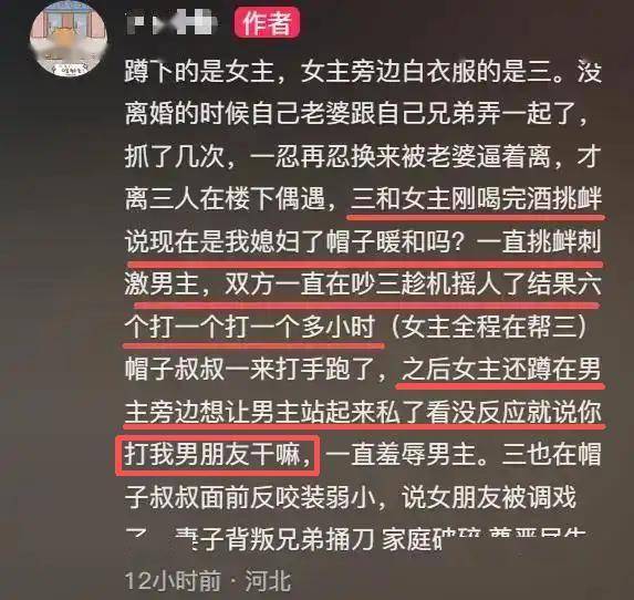 直到男主几近昏迷,女方才象征性地去劝了一下。而她也不是担心前夫的伤势,是怕闹出人命,才勉强出手相劝。