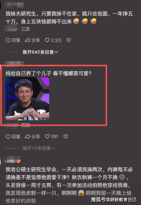 但是如果换成一个女人,可能又觉得这样会被骂惨了,因为她毕竟得相夫教子,大家都说这样的博士老公就跟养一个儿子有啥区别呢?