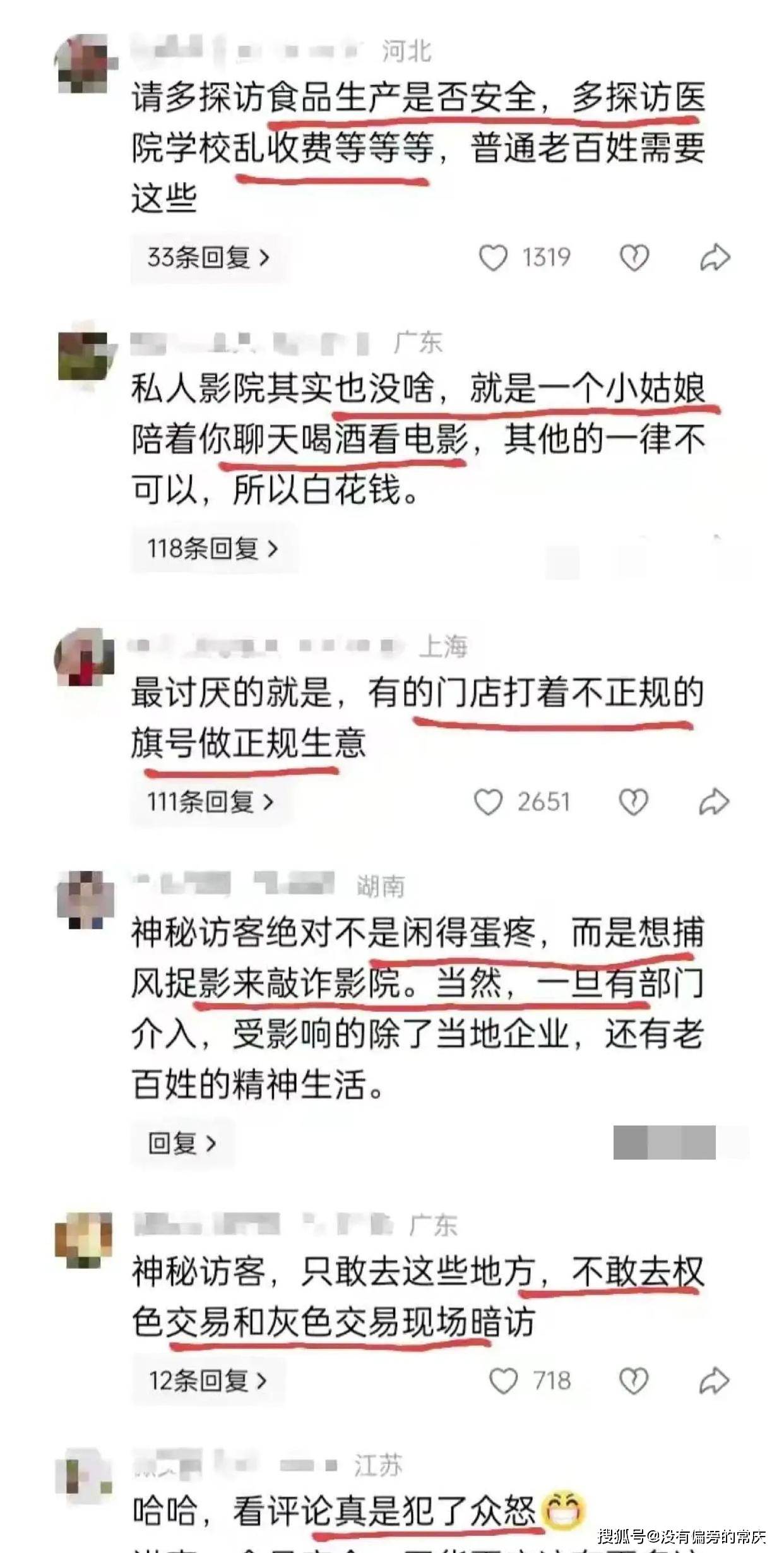 老百姓最烦的一件事是,大家天天去查这些乱七八糟的店。为什么没有人去好好查食品安全呢?网友们都说,那些去暗访的人,精力真好。他们有这些时间,不如多看看大家真正关心的事情。我现在都不敢随便去私人影院了。花钱进去,我还得担心会不会遇到问题。