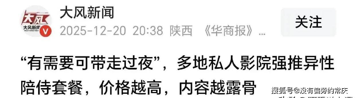 网上又说私人影院有猫腻。西安和成都,很多地方都被查出了问题。有人秘密探访,他们发现很多包厢不是给人看电影的。那些包厢其实是卖有偿服务的。服务员偷偷告诉我,花299块钱,就有女孩陪。多给钱,甚至能过夜。这根本不是电影院,这就是一个挂着合法牌子的黑窝点。我听了真生气。