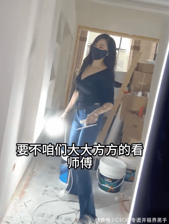 这次拍摄的地点是一个装修中的工地,现场环境非常复杂,到处都是随意堆放的装修工具,占据了大部分的空间,剩下给她的活动空间几乎微乎其微。尽管如此,这并没有影响到她的拍摄计划。她先是调整好了镜头,接着站在镜头前,一手拿着补光灯,另一只手拿着装修工具,在提前挑选好的音乐伴奏中开始了舞蹈。她装作在墙上刮腻子,然而手停留在空中,随着她腰部和臀部的扭动,手也随着节奏来回摇动。尽管她戴着口罩,但从她的眼神中依然能看出那种刻意暧昧的表情,整个舞蹈看起来毫不含糊,充满了擦边舞的意味。