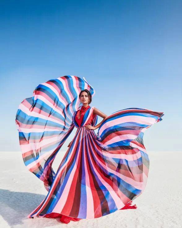 塔伦·基瓦尔的摄影风格独树一帜,宛如一股清泉,为印度时尚摄影注入了全新的生命力。他打破了传统时尚摄影中那种刻板、模式化的表现手法,不再局限于单纯地展示服装的款式与质感。在他的镜头下,模特不再是没有灵魂的衣架,而是被赋予了丰富的情感与个性。他善于捕捉模特瞬间的神态与姿态,通过光影的巧妙运用,营造出一种独特的氛围与意境,让每一张照片都仿佛在诉说着一个动人的故事。