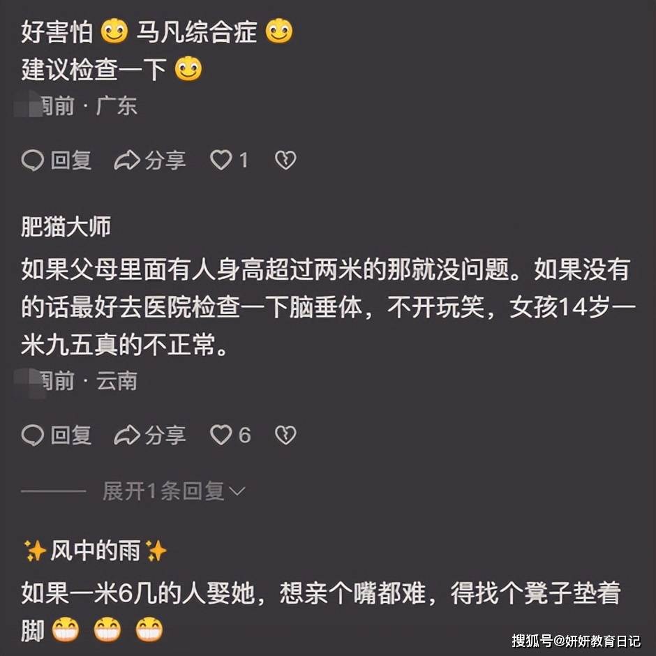 就像一些网友也提醒这位家长说,你女儿现在初中已经这么高了,等到她高中或者成年之间,还有可能长到两米以上,到时候这个身高反而是过犹不及。