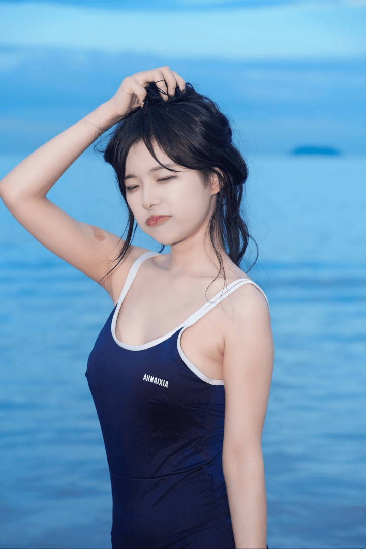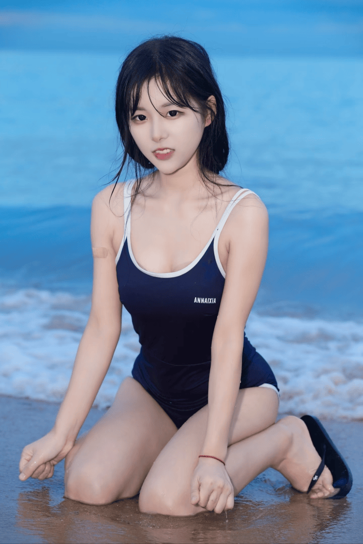 在海边的沙滩上,轻松地跪坐下来。一只手可以继续放在脑后,另一只手自然地放在腿上,眼神望向远方。这个姿势能将你和大海融为一体,画面充满了温柔和恬静感,特别是保守的甜妹穿上死库水,简直不要太甜了!头发稍微湿一点更有感觉。