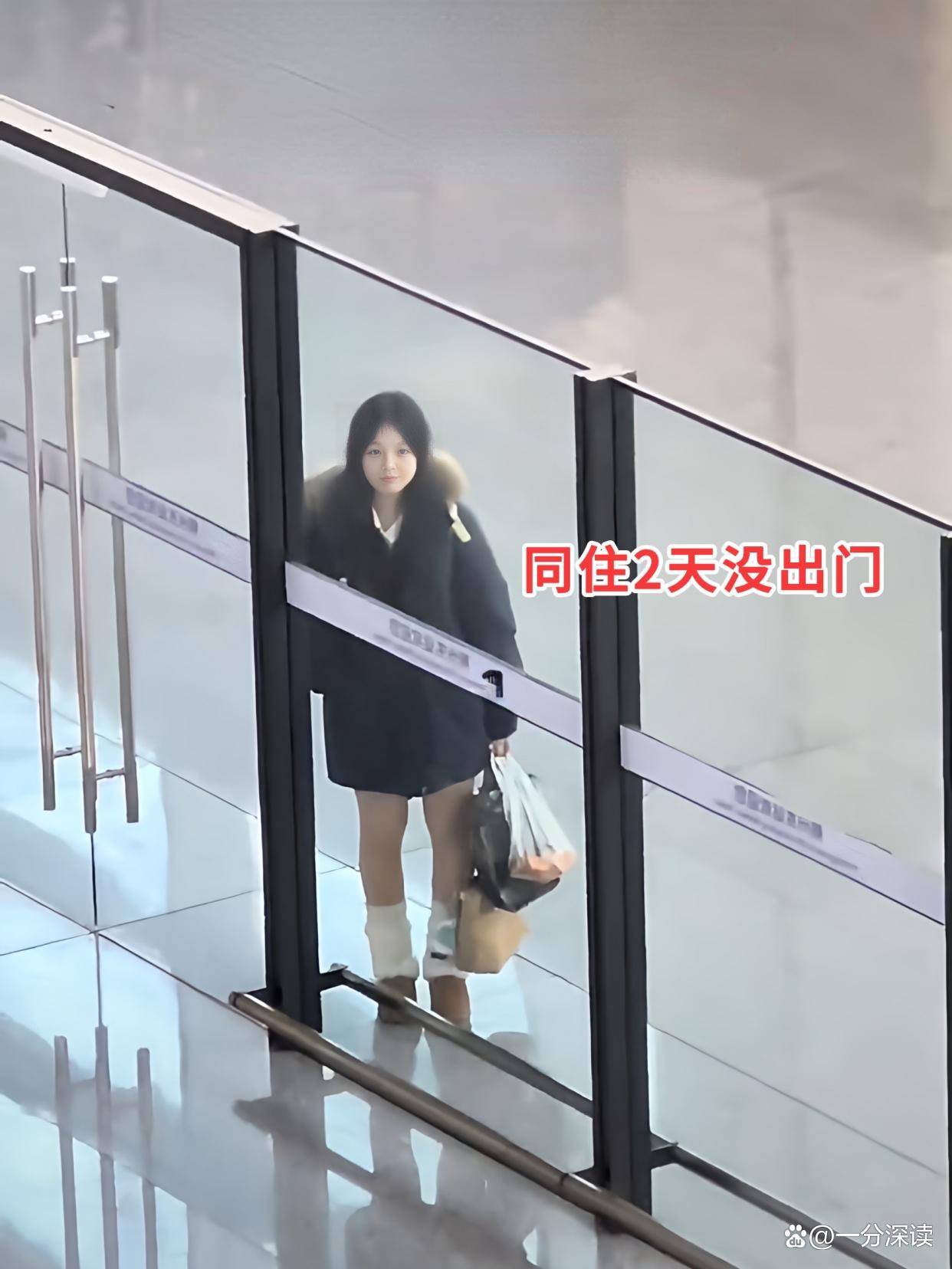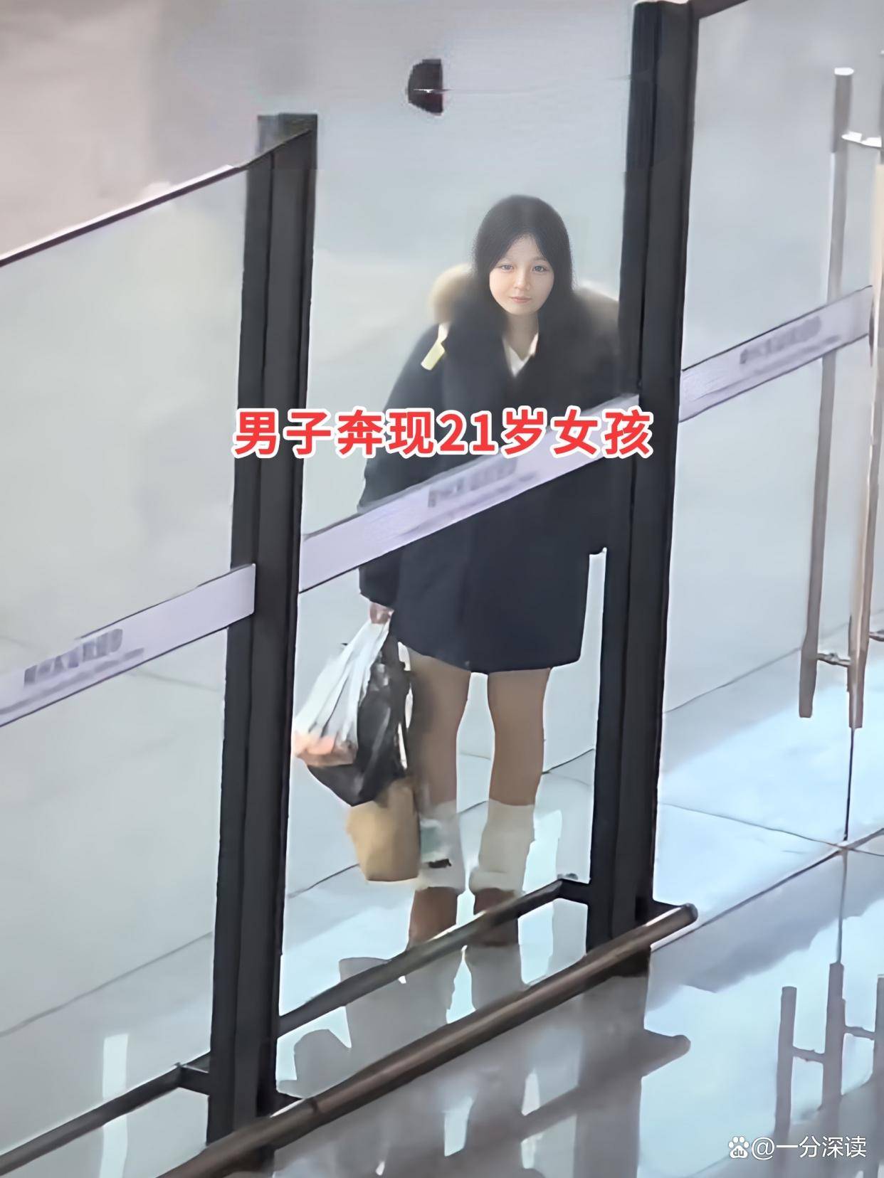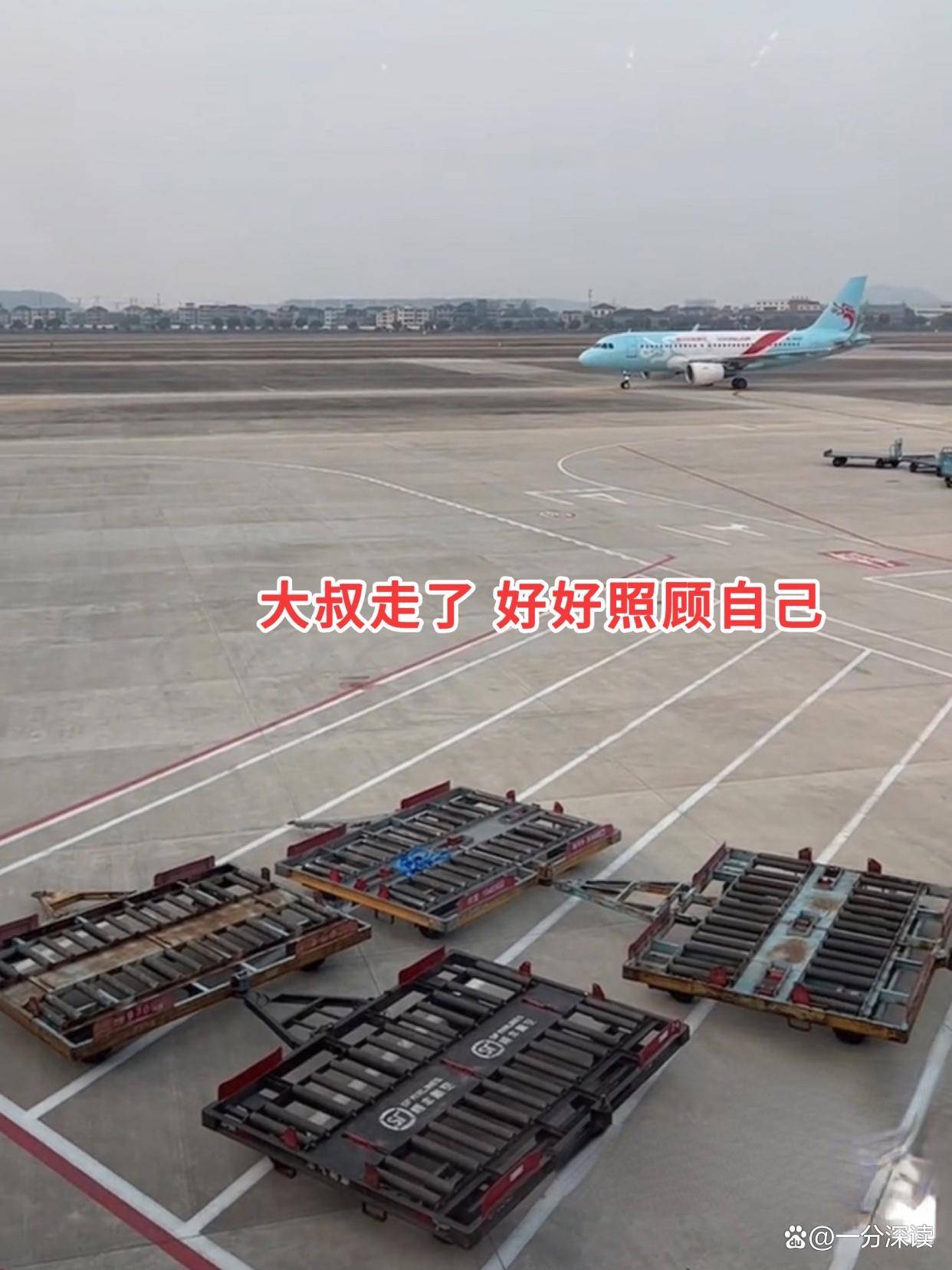 视频显示,女孩站在门外,肤白貌美,身材纤细,穿着羽绒服,目不转睛地看着男子。男子也很不舍,但还是上了飞机。
