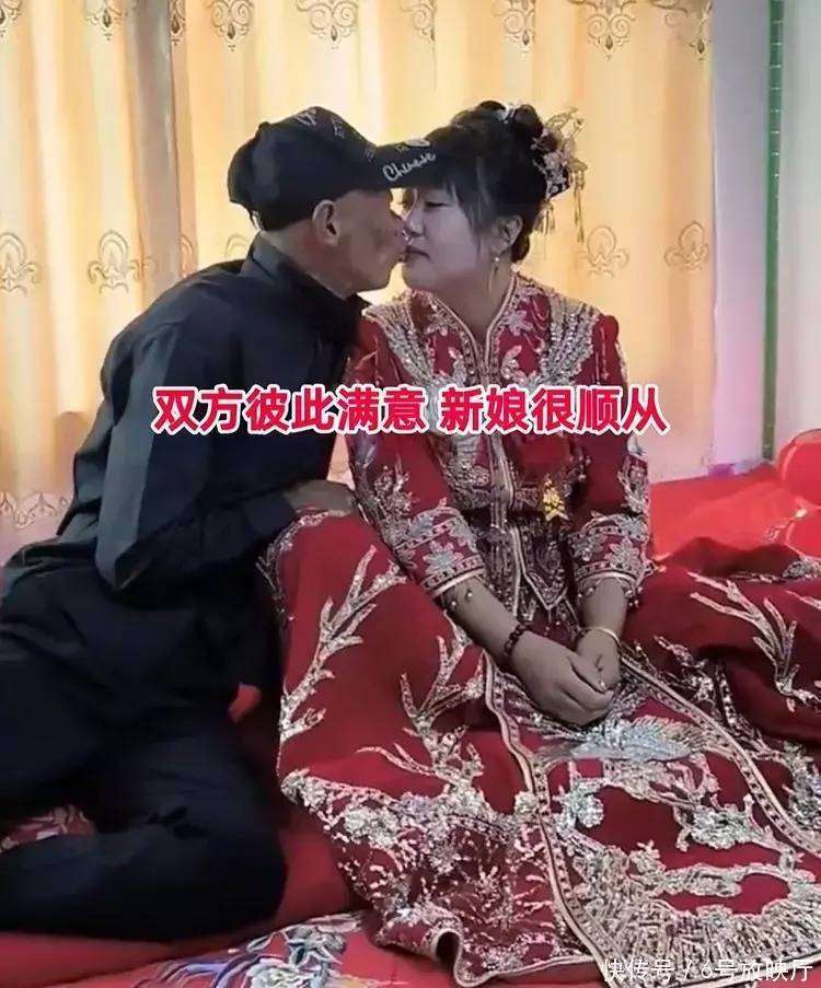 接着,新人被引领进了婚房,摄影师开玩笑地让两人亲吻。在大家的起哄声中,新郎鼓起勇气亲了新娘一下,露出了满足的笑容,仿佛终于确认了自己从此有了妻子。也许,这样的一吻不仅仅是婚礼上的仪式,它意味着新郎心中的那份踏实与幸福:从今以后,他终于可以扬眉吐气,或许很快就能迎接一个属于他们的小生命。尽管新郎年龄偏大、相貌平凡,但新娘似乎并没有表现出任何不满,整场婚礼她都显得十分从容,毫无抵触。 视频曝光后,网友们的评论纷纷炸锅。