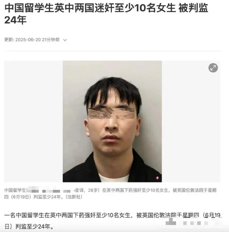 2025年11月14日,英国伦敦刑事法庭内,气氛凝重得让人窒息。33岁的中国籍留学生徐某穿着囚服站在被告席上,面无表情地听完法官宣读判决——终身监禁,最低服刑14年。这个曾在伦敦留学圈里被称为“热心大哥”“法律系高材生”的男人,此刻卸下了所有伪装,露出了禽兽的真面目。他的案宗里,24项性侵相关罪名密密麻麻,从残忍的强奸到蓄意下药、疯狂偷拍,桩桩件件都令人发指。更让人脊背发凉的是,警方调查后发现,他的潜在受害者可能高达数百人,横跨英国与中国,一场持续四年的狩猎游戏,终于在这天以铁窗为终点画上了句号。这到底是怎样一场精心策划的罪恶?今天咱们就来好好扒一扒这个高学历恶魔的真面目。......................................................................01......................................................................徐某的“狩猎场”,藏在伦敦格林威治区那套价值70万英镑的临河公寓里。