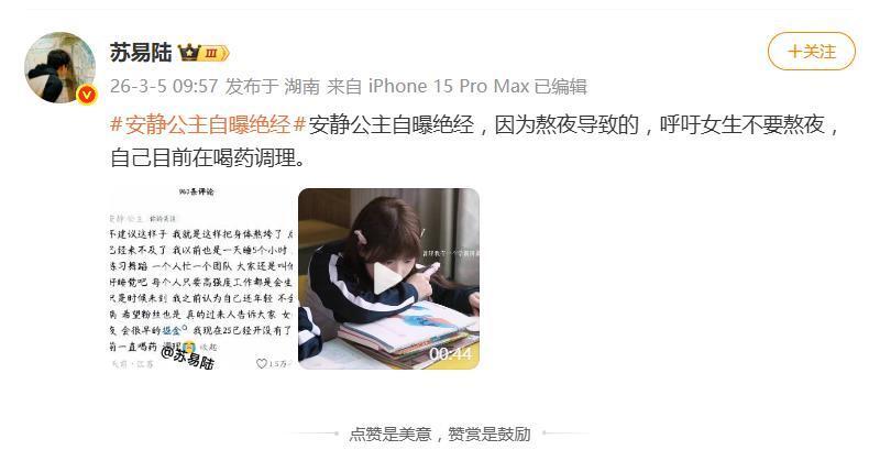 在直播中,安静公主坦言自己已被医学诊断为继发性闭经,必须依靠长期药物调理。她将病因直指过去几年“日均睡眠不足5小时”的直播日常——长期通宵熬夜、饮食混乱、工作压力如山,最终让身体拉响了最刺耳的警报。她反复强调“超过23点就算熬夜”,并后悔莫及地表示:“以前直播通宵,现在不敢了,后悔来不及。”