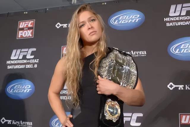隆达·罗西是美国女子MMA巨星,她于2013年开始征战UFC,之后打出了多场精彩的比赛,并且多次卫冕女子雏量级(61公斤)金腰带,她也凭借着出色的地面技术,被誉为“十字固女王”。此外,罗西拥有着出众的口才,与鲜明的个性,成为了UFC明星拳手。