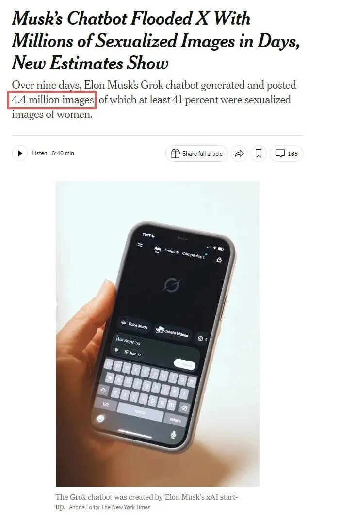 上周,两件看似毫不相关的事同时发生了。第一件事,TikTok集中封禁了一大批网红账号,她们是清一色的黑人女性,面孔精致、身材夸张、表情自然。唯一的问题是,她们全是AI生成的假人。(相关报道)同一周,美国男子Michael Smith在纽约联邦法院认了罪。他用AI生成了数十万首歌曲,再用一千多个机器人账号循环播放,七年骗走超过800万美元版税。 (相关报道)一个卖假人,一个卖假歌。一个在社交媒体上收割流量,一个在流媒体上收割版税。两件事的行业不同、手法不同、受害者不同,但它们背后的逻辑是一样的。曾经需要高门槛才能实施的犯罪,现在变成一门任何人都可以上手的“生意”。先来说第一件事。BBC最新调查发现,TikTok和Ins上活跃着大量由AI生成的黑人女性账号。她们往往穿着暴露,皮肤经过处理,显得异常地黑,且账号名称刻意使用“Black”“Ebony”等标签,其目标人群是谁已经不言自明。BBC发现了至少60个此类账号,绝大多数在ins上运营,约三分之一同时活跃在TikTok上。重点是,这些AI图像和视频没有标注为AI生成,明显违反了平台规则。举个例子,其中一个被TikTok封禁的账号,盗用了模特Riya Ulan的视频。Riya是马来西亚人,纯亚洲人肤色,结果经过AI上色,她变成了这样: (@riyaulann VS 假账号)最让人不安的是,“上色版”的Riya在TikTok上获得了3500万次观看,在Instagram上获得了1.73亿次,是Riya原版视频的47倍。评论里有网友看出了AI味儿,留言说:“我希望你不是AI,你是在太太太太太漂亮了。”结果假账号回复道:“哈哈哈当然不是了,谢谢你。” (假账号的回复)Riya表示,她很生气:“我的视频当然都在网上...但这不意味着你可以随意偷走它,当成是你的。”她曾多次向两个平台举报假账号,但官方无动于衷,直到BBC联系TikTok后,假账号才终于被封禁。这些账号当然不是做着玩的,它们会互相关注、互相点赞,形成矩阵式推送。它们都会带链接,最终会导向第三方的付费色情网站。换句话说,社交媒体上免费的擦边内容是鱼饵,为了把流量引导至付费平台。当然,付费平台上的视频,也是AI做的。在BBC介入后,TikTok在两天内封了其中20个账号,但ins那边仍然表示“正在调查”,截至BBC发稿时,那些假账号仍然活得好好的......而这,只是AI色情产业链的冰山一角罢了。2025年底,马斯克旗下的聊天机器人Grok推出图片编辑功能,然后立刻被大规模滥用......用户只需对一张女性照片说一句类似“给她换上比基尼”之类的指令,Grok就会直接生成图片,根本无需征得照片原主人同意。据《纽约时报》统计,当时Grok在九天内生成了440万张图片,其中至少41%,是色情化的女性照片。 (相关报道)而这仍然不是最恐怖的。在通用的图像生成AI中,如果你叫AI生成一个人,它只会随机生成一张脸。但如果你非要生成特定的张三李四,它做不到,因为AI并不认识张三李四。这时候就需要一种叫“LoRA”的微调体系..。你只要收集一个人的几十张照片,就可以训练出一个专门针对这个人的LoRA文件。把这个文件加载到AI工具里,它就认识这个人了。之后你输入任何指令,AI生成的图像里都会是这个人的脸。现在市面上甚至能找到专门制作这类小模型的服务。比如,美国有一个网站叫Civitai,里面有一个板块是“悬赏”。顾名思义,可以花钱悬赏别人帮忙做LoRA文件。 (Civitai网站)这甚至不是什么暗网、黑市,而是有风投支持的正经网站。准确来说,制作LoRA模型本身只是让AI“认识”一张脸,这一步确实不违法。但这也意味着,任何人只要拿到你的几张照片,都可以付费请人制作你的小模型,然后用AI无限生成你的照片......至于是什么照片呢?你当然不会知道,你也没有任何控制权。这就相当于花钱买了一把专门打开某个人的钥匙。而像Riya这类网红、模特,本来就会在网上大量发布自己的照片,无疑是最“完美”的受害者。 (Riya的主页有她的海量自拍)时至今日,AI“制造”一个女人的成本几乎已经降到了零。然后围绕这个能力,流量引导至色情内容,色情内容又变成更多的流量,一条产业链就这么形成了。接下来是同一周发生的第二件事。2026年3月19日,美国男子Michael Smith承认了电信欺诈的罪名。他同意退还八百多万美元的非法所得,面临最高5年监禁。这是美国司法史上首例AI音乐欺诈的刑事案件。Smith最初是个真正的音乐人,有自己创作的少量歌曲。但他很快意识到,靠真实创作根本就赚不到什么钱。 (Smith 2016年的照片)想从流媒体平台赚钱,你首先得有播放量。而想要有播放量,你要么出名,要么出爆款热歌,而这两个东西,Smith都没有。但是他可以伪造。2018年底,他开始与一家AI音乐公司合作,买了数十万首AI生成的曲目。从此,原材料的供应变成了无限的。有了歌,下一步是制造听众。Smith创建了1040个机器人账号,分布在Spotify、Apple Music等流媒体平台上。他用自动化软件让这些账号不间断地播放自己的AI歌曲。每个机器人每天播放约636首歌,合计每天制造约66.1万次播放。为了不触发平台的反欺诈系统,他的设计相当周密:播放量分散在数千首歌曲中,避免任何单曲播放量猛增;而且所有机器人都挂着VPN,模拟不同地区的真实听众。这套系统从2018年运行到2024年。六年,硬生生造了数十亿次虚假播放,最终骗取了超过800万美元的版税。需要特别指出,Smith这套做法并不只是“薅平台羊毛”这么简单,而是真实地伤害了其他音乐人的利益。这里稍