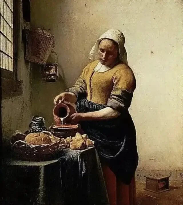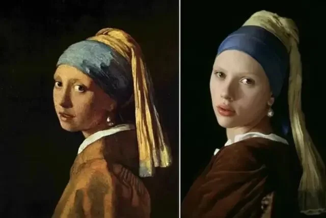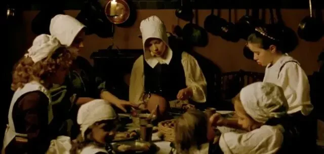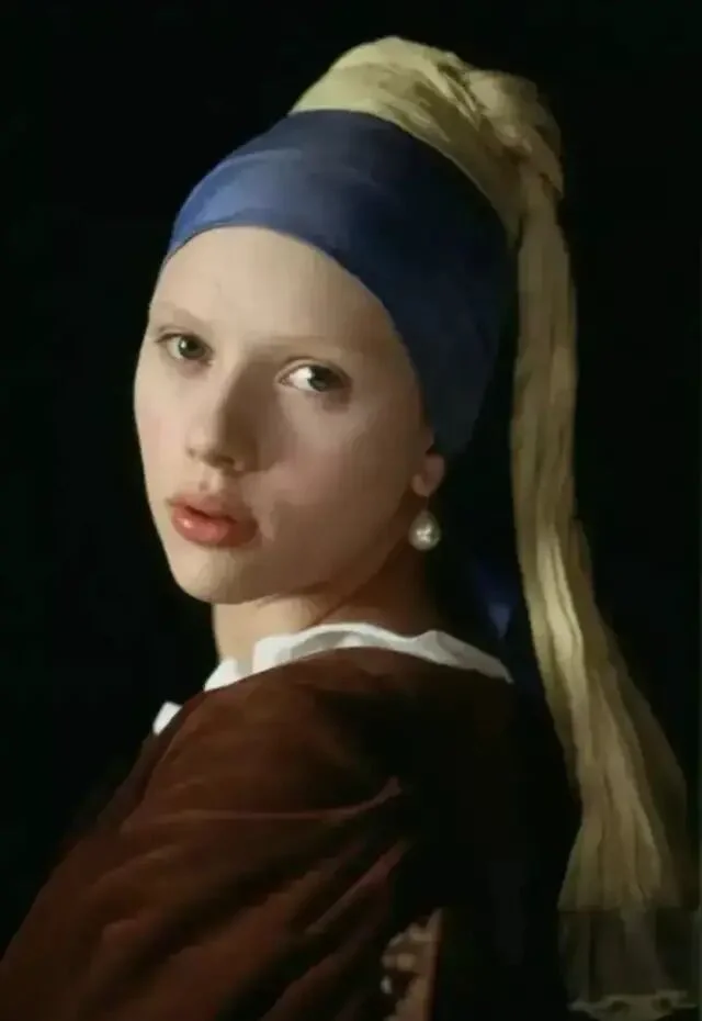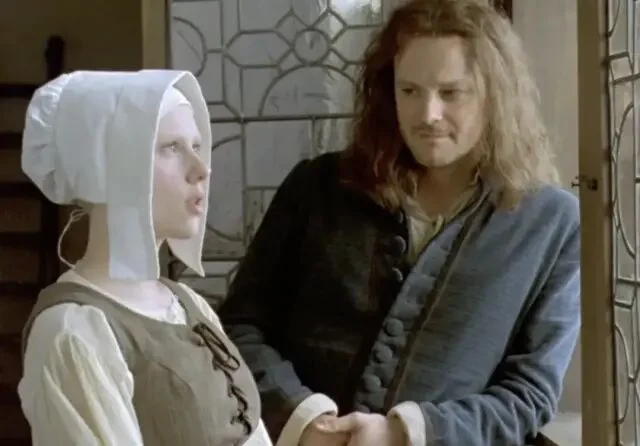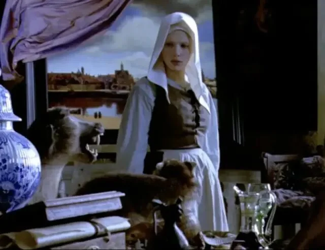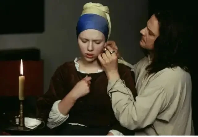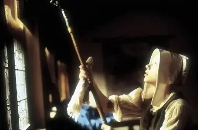 绘画是永恒的谜。人们对名画的想象力,大概永远都不会穷尽,尤其是对维米尔的这幅《戴珍珠耳环的少女》。它尺寸不大(仅44.5×39 cm),魅力不小,荷兰艺术评论家戈施耶德称它为「北方的蒙娜丽莎」。她们一个成熟优雅,一个清澈无瑕,是艺术偶像中当之无愧的顶流。 画中的少女恬静温柔、似笑还嗔,微微张开的嘴唇欲言又止,充满诱惑,所谓的「纯欲风鼻祖」们,在她面前应该都要挪挪位。维米尔很擅长描绘平民的生活细节,但在这幅画中,他用空无一物的深色背景,衬托出了少女独一无二的存在,同时,也抹去了一切有关少女身份的暗示,这份神秘让她有如从黑暗中散发出来的幻象。正因为如此,画作问世后的三百多年来,人们不断地用cosplay的方式,向这个谜一样的女子致敬,其中的最强王者,便是寡姐。 2003年,导演彼得·韦伯将同名电影搬上了大银幕。该片在画家维米尔生活的荷兰小镇代夫特取景,古朴的石拱桥,狭长的木质小船,热闹的集市...片中的每一帧都宛如一幅流动着的世俗画。画中穿行的,是19岁的寡姐,举手投足间,目光流转中,有着少女式懵懂的性感。她与画家的爱情也在这朦胧的情愫中展开,有人说:「这是部没有一个色情镜头,但却处处充满了情欲的电影」。01倒插门的男人,与做奴仆的女人故事发生在17世纪六十年代,那是荷兰的黄金时代。跟很多艺术大师们一样,维米尔生前郁郁不得志,他生性清高,不愿四处兜售画作,只能靠为当地一位富商画画来维持一家人的生计。他表面上过着体面优雅的生活,但实际上一团糟。维米尔一家老小都住在岳母家,算是个倒插门的女婿,家中大权全靠岳母掌握,与富商的合作对接,也是她一手操持,维米尔没什么话语权,只是个赚钱养家的工具人。 他与妻子卡萨琳娜即将迎来第6个孩子,家里人手不够,只能再雇一名女佣,这庞大的生活开销,全靠维米尔画画来维持。妻子不懂绘画,也理解不了丈夫的艺术追求,但她很擅长嫉妒那些年轻漂亮的模特,闹起情绪来常常歇斯底里。这压抑的家庭氛围,让维米尔郁郁寡欢。 同样为生活所累的,还有17岁的少女葛丽叶。她的父亲是一名陶瓷画匠,在一次意外中受伤失明,为了养家糊口,她来到了维米尔家中做帮佣。虽出身贫民,但葛丽叶天生丽质,举止得体,还遗传了父亲的艺术天分。跟那些笨手笨脚的女佣不一样,葛丽叶不仅能将画室打扫得一尘不染,还能保持画室中的陈设摆放跟原来丝毫不差,更重要的是,她懂艺术。当她询问女主人,窗户是否需要擦拭时,对方不屑地回答:「这不需要问我。」但葛丽叶说:「擦拭完之后,光线会不一样。」很显然,她知道光线对于作画的重要性。 出于对艺术的敬畏,葛丽叶每次打扫画室时几乎都要屏住呼吸,她的眼光总是会不由自主地看向维米尔的画作,虽然与男主人尚未谋面,但她总忍不住想,到底是什么样的人,才能画出如此绝美的作品。 在一次偶然的接触中,维米尔注意到了这个美丽的女仆,她对绘画有着与生俱来的天分,似乎天然能读懂他画作中想表达的内容,而她的纯净又不断刺激着他的创作灵感,这知己般的相遇,让维米尔狂喜。爱和艺术,足以让人摆脱世俗烦扰,而他们之间的禁忌,又让这情愫始终蕴藏在引而不发的含蓄之中。02他俩神交,比激情戏澎湃多了阁楼上的私密空间里,连空气中都充斥着暧昧。维米尔把葛丽叶叫到窗前,教她辨认云彩的颜色,光线透过玻璃窗,温柔地笼罩着眼前的少女,她看着云,他看着她,眼神里透着无边的宠溺。 画室里新添置了暗箱,葛丽叶不知此为何物,维米尔脱下外套盖住彼此,透过镜片,一幅画呈现在少女眼前,她惊叹不已,密闭的昏暗中,维米尔的男性气息弥漫,这层暧昧似乎就要被挑破,少女有些慌神,她傻乎乎地问:「是箱子告诉你怎么画画的吗?」维米尔被逗笑了,笑容柔和又复杂。 他教葛丽叶辨认那些昂贵的颜料,手把手教她调制,两个人近在咫尺。在这里,他们没有主仆之分,葛丽叶不必去顾虑他的妻子和儿女,维米尔也不会被家庭的琐碎事缠身。这方寸大小的世外桃源,是连画家的妻子都被禁止踏入的,这份偏爱让葛丽叶无法拒绝,同时,也让她的所作所为带着偷情的味道。 如油画一样,整部电影是近乎沉默的,男女主角间的对话极少,葛丽叶的台词只有简简单单的五六十句,一切的情愫,都流露于眼神与动作,这也让葛丽叶摆脱了人间烟火气,显得更加空灵。维米尔的第六个孩子出生时,葛丽叶去给当地的富商送信,这位富商是维米尔的赞助人,也是一家人的经济来源。富商见到貌美如花的葛丽叶,顿生歹意,他想要与她一同入画。维米尔据理力争,最终富商同意只画葛丽叶一个人,条件是画作只能卖给他。 为了寻求灵感,维米尔要求葛丽叶摘下白色头巾,葛丽叶拒绝了,包裹住头发是一种宗教信仰,它也象征着少女的童贞。架不住画家的强烈要求,葛丽叶还是在隐蔽处摘下了头巾,棕色的卷发像波浪一样倾泻下来,维米尔在暗处看着,心潮澎湃。恍神间,少女忽然回头,四目相对中,暧昧的气息在空中凝固,下一秒是疯狂还是毁灭,连神都把握不住。 03艺术家玩初夜,隐晦又高级在影片的高潮处,维米尔希望葛丽叶戴上妻子的珍珠耳环,葛丽叶再次拒绝。她不敢冒犯女主人,不想插足他们的婚姻,更不要为这份没有结果的爱情再添上一层卑微。但最终,她还是妥协了,这幅画关乎着维米尔一家人的生计,她不想看到他因为穷困潦倒而放下画
