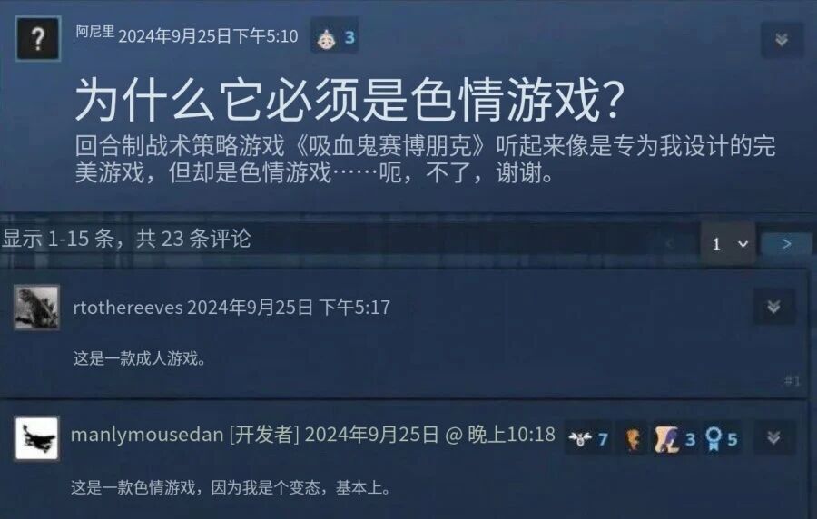 3月27日消息,一款名为《吸血鬼辛迪加:月落帮派》(Vampire Syndicate: Gangs of MoonFall)的成人向赛博朋克 RPG 正在社交媒体上疯传。原因并非仅仅因为其精良的制作,而是开发者针对“为何非要加入成人元素”的一段极其“纯爷们”的超神回复。