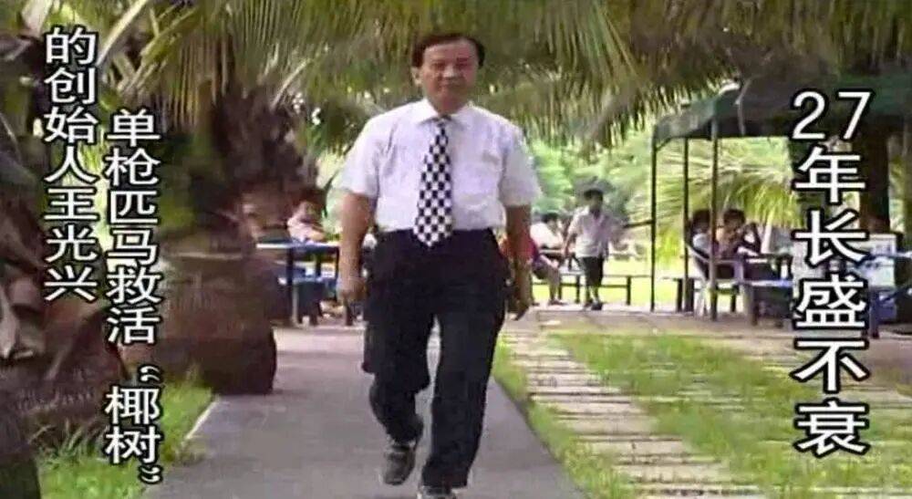 在舆论环境中,王光兴的名头虽不如宗庆后等人响亮,但对于椰树集团内部而言,王光兴却是一个无法磨灭的精神图腾般的存在。