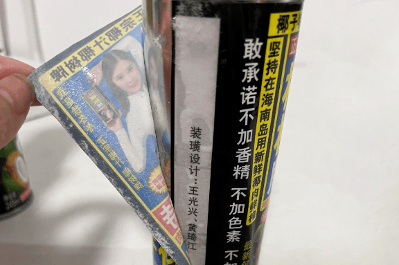 然而,有网友加热罐装椰树椰汁时不小心把包装煮开,却发现一个隐藏彩蛋——包装的装璜设计是王光兴和黄琦江。其中,王光兴正是椰树的创始人,也是椰树的精神图腾。