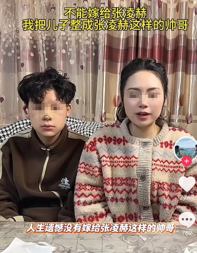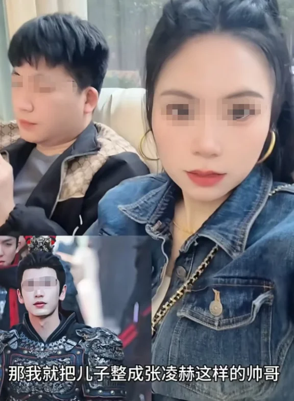 ..............................................................表姐先介绍一下张凌赫,他1997年12月30日出生,江苏无锡人,身高190cm。念的是南师大的电气工程专业,后来转型做了演员。说实话,他的颜值是摆在那里的:深邃的眉眼、高挑的身形、一米九的骨架套上将军盔甲,视觉冲击力确实很强。不喜欢他的人管他叫"粉底液将军",觉得妆容太精致、太现代,和古代战场格格不入,头上两根被戏称为"蟑螂须"的雉鸡翎也没少被人拿来说事儿。但喜欢他的人是真喜欢,一口一个"老公",刷评论区的时候表姐看得眼睛都花了。表姐觉得,这没什么好说的,偶像剧就是看个乐,帅不帅,喜不喜欢,都是个人自由。追星追到正常范围,一没伤着别人二没损失啥,那就随它去。 可有些人追着追着,就走到了另一条轨道上,不是粉丝的轨道,是……牺牲他人的轨道。我们的主角叫“四少与飘飘”,她是一个五个孩子的妈。她自己已婚,上有老下有小,可电视剧一播张凌赫一出场,她脑子里的那根弦就断了。她在视频里直言不讳,说自己这辈子最大的遗憾,就是没能嫁给张凌赫。好,这句话表姐先放着。 然后镜头一转,她盯上了自己的儿子,一个看起来十八九岁、正在青春期的普通少年。单眼皮,大鼻子,扁扁的嘴,说好看算不上,但他就是一个正常的青春期男生,有青涩、有朝气,有那种还没有被社会磨圆的干净。她的老公长得怎么样?眉眼周正,气质尚可,和儿子简直是一个模子里刻出来的。但在这位飘飘眼里,老公再怎么周正,终究不是张凌赫;儿子再怎么乖巧,也不是她心里那个一米九的将军。于是她做了一个决定:带着儿子进了整容医院,要把儿子整成张凌赫。 手术是真的做了,表姐也不知道她丈夫和儿子为啥能同意这种要求。割双眼皮、垫鼻子、丰唇,几乎把脸重新雕了一遍。手术结束后四五个小时,孩子脸上裹着绷带,麻药还没完全退,整张脸肿得像个发面馒头,这个时候,这位妈妈做了什么?她在病床旁边扭腰摆胯,来了一段社会摇,还拍成视频发到了网上,配上文字说自己激动,以后天天就能看见"平替张凌赫"了。跳完舞,她直接躺到病床上,让刚做完手术的儿子给她端茶倒水。 表姐在屏幕前看到这一幕,真的沉默了好几秒。事情当然没有就此结束,术后第四天,孩子脸上消了些肿,已经能看出网红脸的雏形。双眼皮割得又宽又假,鼻子垫得过高,确实比整容前"帅"了,但那是一种千篇一律的帅,僵硬,没有灵魂,也没有他原来那张脸上的少年气。和张凌赫对比?别说七分像,三分相似都没有,连影儿都不沾一点。而她吐槽儿子的那句话,才是表姐觉得最窒息的一句:“儿子小时候明明挺帅的,怎么长大了就长残了?” 你自己生的娃,当着全网说他"长残了",然后把他推上手术台,这不是当妈,这是造孽啊!视频一发出全网炸了,有人说这是全网最惨的老公,辛苦赚钱养一家老小,老婆不心疼他,天天对着别的男人疯魔,甚至把儿子整容成别人的样子。 而更多的人,是在替那个儿子心疼。可这位飘飘面对质疑是怎么反应的?她晒出了儿子整容后的帅气照片,骂网友是"狗",骂网友是"丑八怪",放狠话:“我们全家都同意整容,包括我儿子,轮得到你们这些外人指手画脚?”一个十八九岁、三观还没定型的孩子,在亲妈强势的情感压力面前,他真的有资格说"不"吗? 这个问题,先放在这里,等下表姐说到第二个故事再回来把线接上。如果说飘飘的故事属于"向内伤家人型",那下面这位河南姐妹,走的是"向外骚扰全社区型"路线。她的网名叫“挽风”,是河南姑娘,但是她这文艺名字和她后来干出来的事情放在一起,违和感极强。也是电视剧一播,她也跟大部分姐妹一样,一头扎进张凌赫的粉圈,而且走火入魔的程度,把她的追星热情推向了一个全新的高度。事情发生在她搬新家之后,她四处打量左看右看,哪哪都好,就是觉得缺点什么。 缺什么?缺张凌赫的存在感。然后她脑子一转,发现小区的电梯是新装的,里面的广告栏空空如也,只有一个框,什么都没贴。于是她照着框的尺寸,打印了一张张凌赫的证件照,穿西装打领带,端正正式,然后直接塞进了电梯的广告栏里。 电梯一开门,一张硕大的黑白证件照跃然眼前,没有任何预警,就那么直勾勾地盯着你。表姐都不明白了,你真是他的粉丝吗?给人家打个黑白照片干嘛,你家打印机就那么寸。