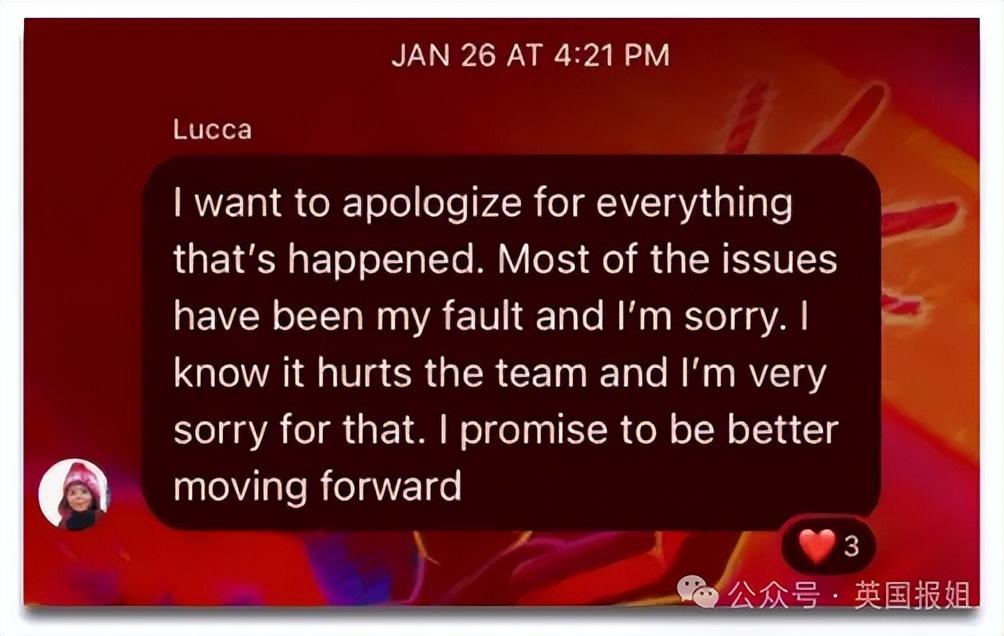 24年1月,事情最初曝光时,卢卡曾在水球队群聊中公开致歉: