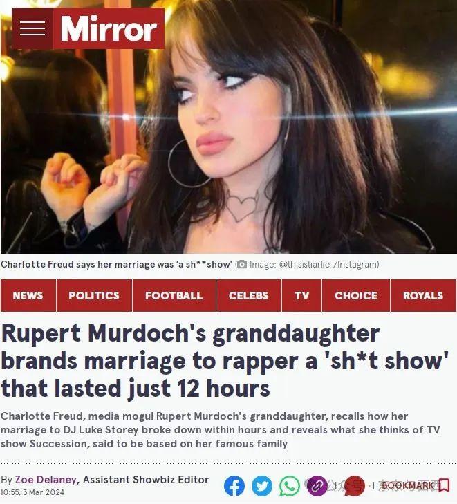 默多克的外孙女名叫夏洛特·弗洛伊德,她妈是默多克和第二任妻子安娜的大女儿伊丽莎白↓↓既有魅力又有头脑,是最像老默的孩子,为默多克家族赚了很多钱。