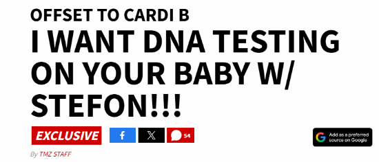 Offset怀疑Cardi B在2025年11月所生的第四个孩子并非迪格斯的,而可能是自己的。