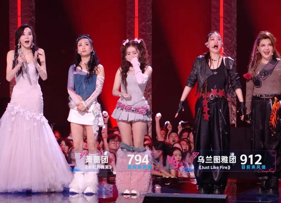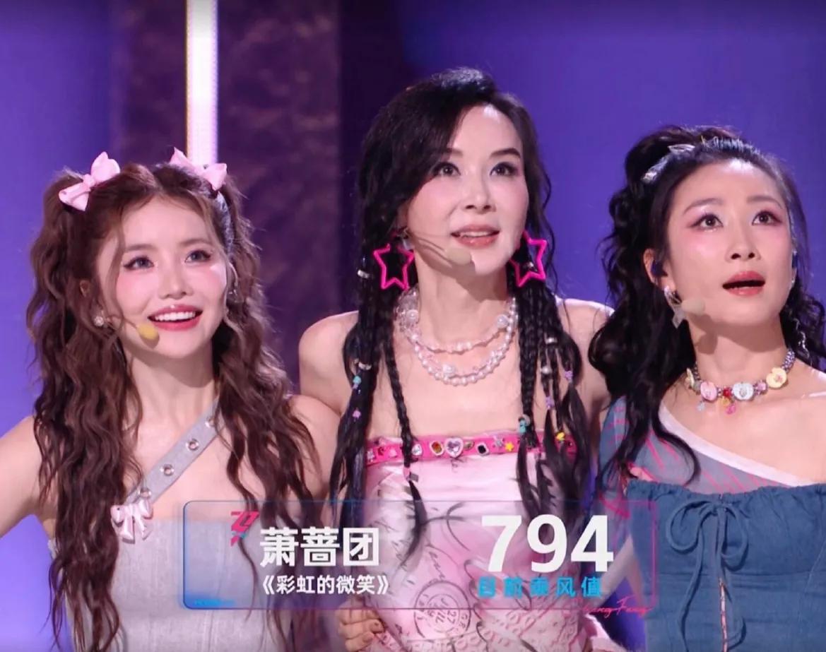 一首《彩虹的微笑》,既视觉上养眼,有千禧年的经济上行美,演唱的也很稳定,萧蔷松弛,安崎撑场,陶昕然也有表现力。