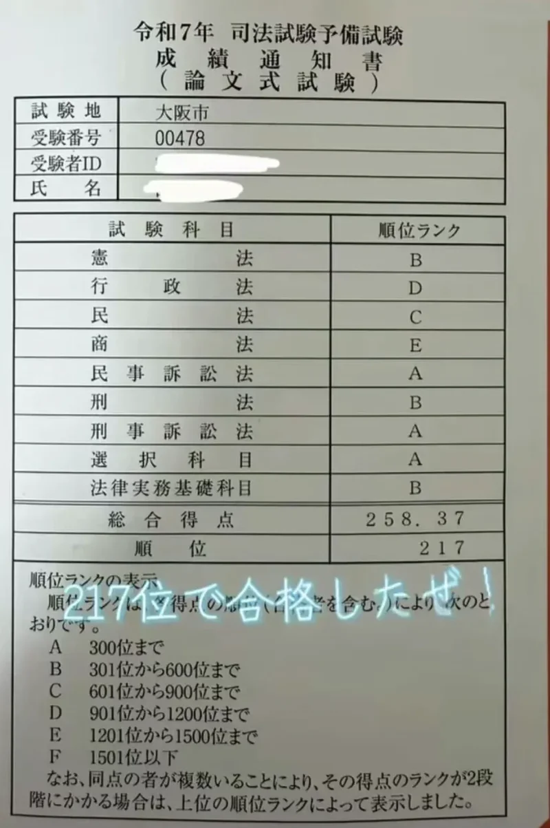 要知道,在日本各大考试中,日本司法预备考试的难度是地狱级别的。这个考试难度和旧的日本司法考试难度差不多,历年来通过率仅为3%-4%左右,因此能及格的基本上都是东大、京都大学法学院的精英,其中的合格者不乏是考了多次才成功通过的。叶斗虽然已经考过了两个难度证书,但法律预备考这么专业的考试听起来仍然是个天方夜谭。东大的法律系毕业生的司法预备考试合格率也只有22%。叶斗没有被厚厚的法律书籍和难懂的术语,超强的脑容量要求吓跑。他不断购买备考的书籍,最终,备考书籍总重量都达到了惊人的53斤。 他按照过去的自学习惯,边看书边做笔记,不懂的内容利用工具书和互联网查询进一步释义。多亏了AI的答疑技术,叶斗越了解法律,就觉得自己越有学习的劲头。由于法律实在是难学,叶斗推掉了所有休息日的外出邀约,从醒来到睡去之间就只吃饭和学习…他报名了第一次法律预备考,结果不出意料落榜了。 但他没有放弃,去年底的预备考他再战,直到最近成绩发布,他发现自己这次通过了…叶斗的通过成绩也根本不是“低分飘过”,他的短答式成绩排名第516位,论文排名第217位(参考人数为1.5万人)。 叶斗通过预备考也意味着,他有大概率能在接下来的司法考试中继续过关斩将——通过预备考的考生通过司法考试的比例高达92%! 相信不久的将来,他会成为一名真正的律师。谈到自己不顾一切地为司法预备考学习的决心,叶斗直言,他希望自己能成为律师,为社会做出贡献。 “如果能对社会产生积极的影响力,那就再好不过了。”如今,在叶斗的ins主页上,他自豪地写着自己的新身份是“主持人 × 律师资格考试预备考试讲师”,还将简介改成了“全球唯一一位通过律师资格考试预备考试的男公关,立志成为律师的人”。 媒体也称赞叶斗是司法预备考“历史上罕见的低学历合格者”。