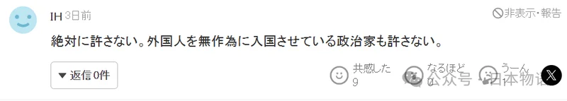 这件事绝对无法原谅。那些放任外国人无筛选入境的日本政客,同样让人无法接受。