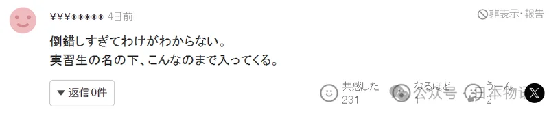 这种想法已经扭曲到让人完全无法理解。打着“实习生”的名义,连这样的人都能进入,实在令人难以接受。