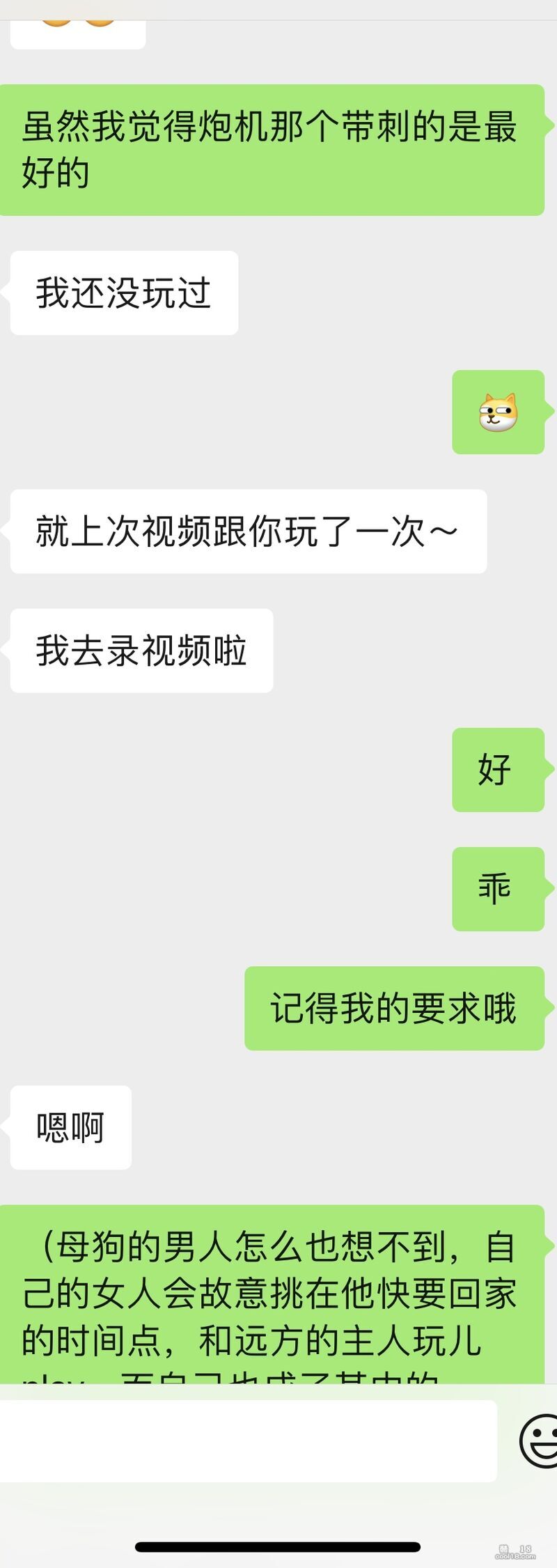 己的生活,但是在我面前,一直都是温驯的母狗。我和母狗是在网上认识的,比较直接,就是调教,BDSM这套。到了如今,还有了点感情在上面。不过她有男朋友,我也有自己的生活。算是两个人的私密小游戏吧。尝试过各种玩具和性癖。不过现在她和男朋友同居,不太方便了,偶尔聊聊玩儿吧。在这里也是和她商量好的,小刺激一下。也是满足我和她的小性癖。之前发过一些,现在就当倒叙了哈哈。图片是让前几天进行调教的记录📝。大家多多评论呀,母狗喜欢看。我们喜欢交流,不过当然是网上那种,我还是蛮宝贝小狗的。换换照片,一起拉个群网调啥的。不过我存货不多哈哈哈,所以有淫妻绿帽癖的来~