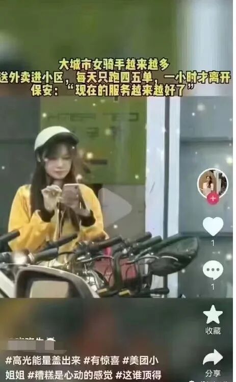 快节奏的工作和生活,让很多人被迫放弃了“衣食住行”的主动权,选择了更节约时间和成本的点外卖。庞大的消费群体支撑着外卖行业的蓬勃发展,而在整个外卖链条中,最不可忽视的中坚力量就是一线岗位的外卖员。 他们风雨无阻,穿梭在城市的各个角落,因为比较辛苦,常见的外卖员大多都是男性。 可最近,却活跃起了一批年轻貌美的外卖媛。 现在,大城市越来越多的美女模特送外卖,上楼一小时后离开,连保安都说:现在的服务越来越好了。