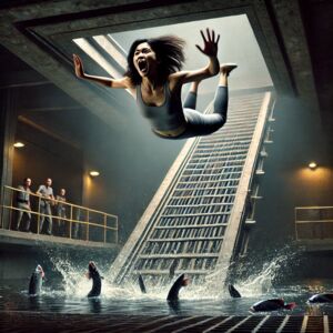 被推向水池边缘的那一刻,Tracy 感受到了脚下金属平台的冰凉。她低头看了一眼自己的短靴,又看向远处湛蓝的天空,心中掠过一丝冷静而决绝的思绪。