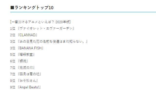 近日,某日媒以“说到最能让人流泪的动画”为题展开读者问卷调查,票选出比较受欢迎的催泪动画,不知道各位喜欢的番剧有没有成功上榜。