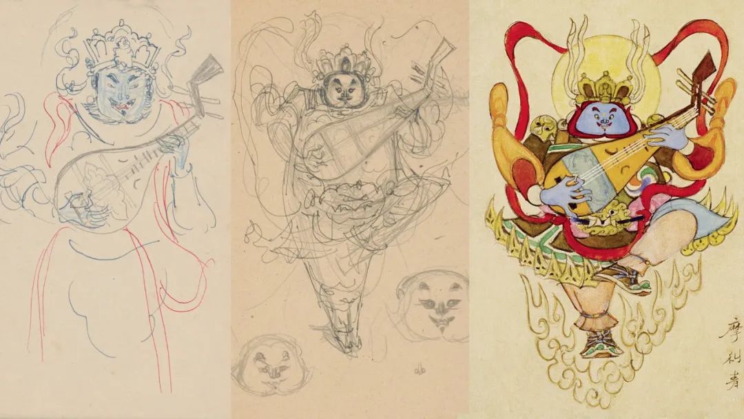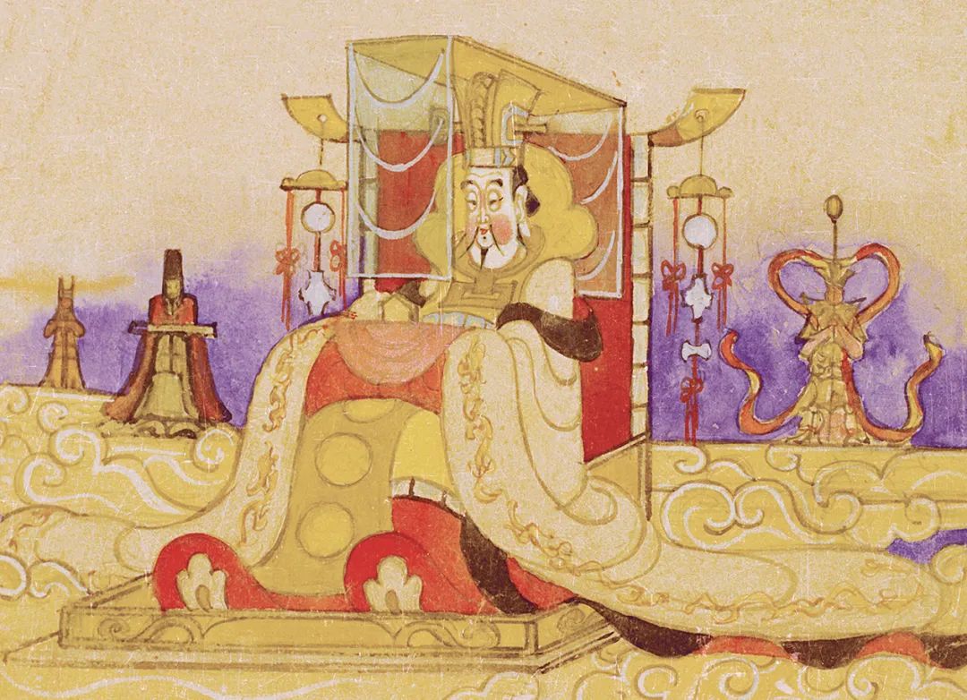 正是有了这些长期的积累和准备,父亲才能完成上海美术电影制片厂给的《大闹天宫》的这个任务。导演万氏兄弟,也是父亲的多年老友,1959年还专程来北京与他一起讨论。来年3月份,父亲又特地去了一趟美影厂。10天里,他一方面继续为动画角色设计形象,画了好多场景的草稿;一方面,他还从一个美术家角度,做了一个总共36色的色稿,阐释从天空到地面到水下,不同的空间层次怎么来用色。