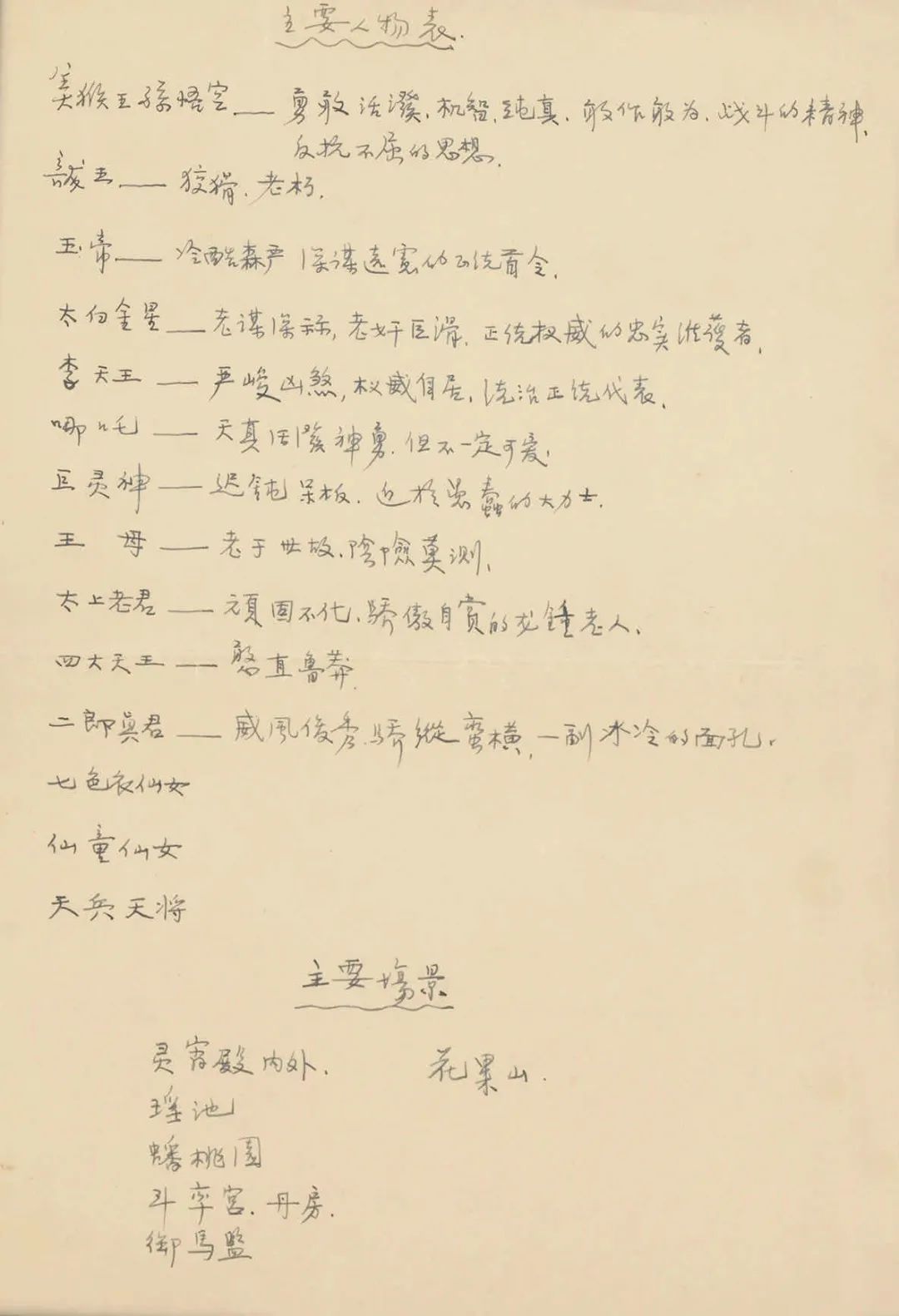 上头总共罗列了14个主要人物形象的要求,和7、8个主要场景。