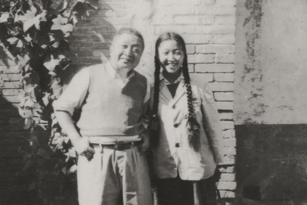 张光宇和女儿张宜秋、儿子张临春在北京椅子胡同合影 1951年