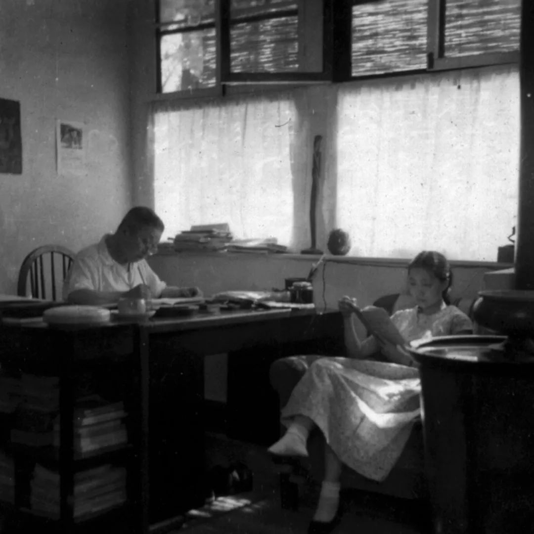 张光宇和女儿周末在家中 1959年
