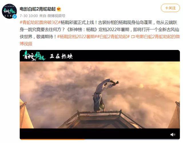 7月30日,《白蛇2:青蛇劫起》官方微博公开该则预告片,未能前去影院观赏的网友终于一睹彩蛋的真容。