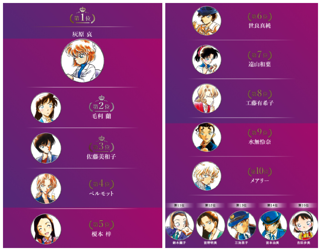 从前十的名单来看,这次的投票活动和以往的并没什么太大区别,前两名依旧是毛利兰和灰原哀。虽然这次的投票活动并没有公布具体的得票数,但从以往的投票情况来看,毛利兰虽然排在第二,但是她和灰原哀的票数差距应该还是有一点的。