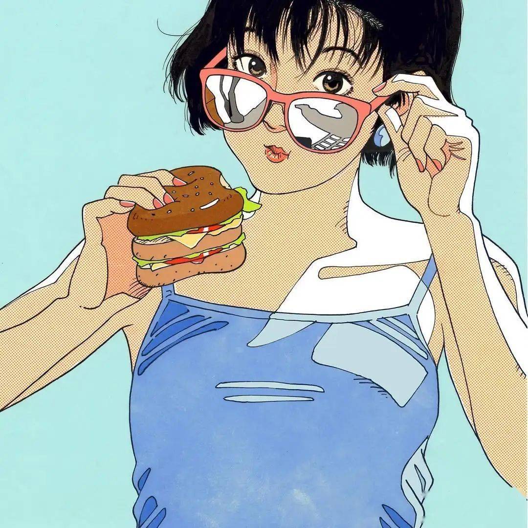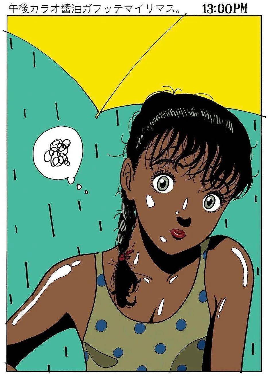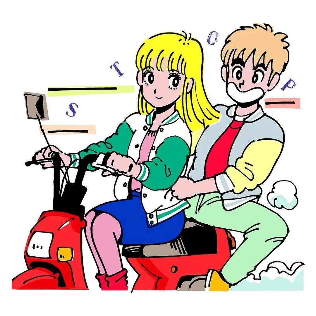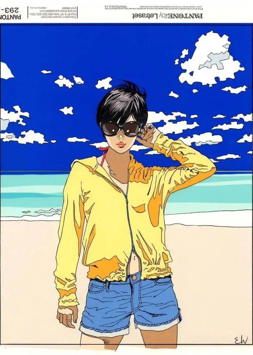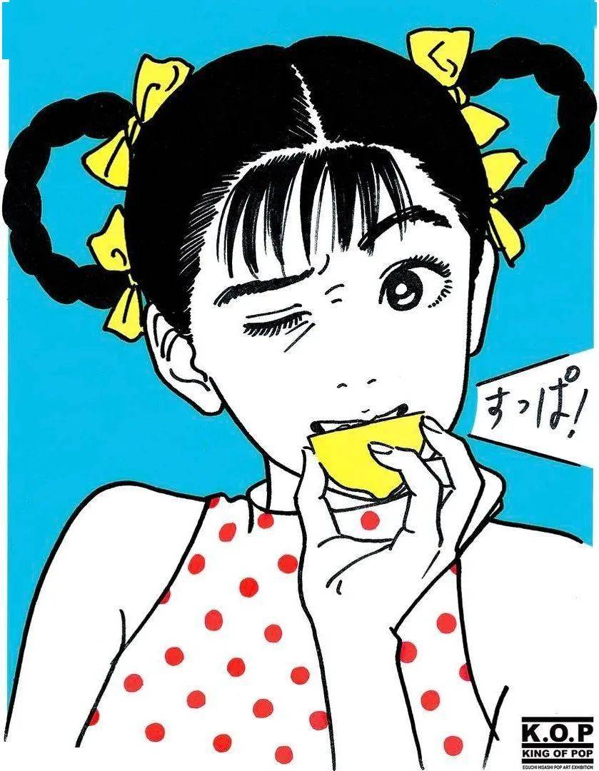 江口寿史喜欢简单的色系搭配,加上几笔简洁的线条,不抢眼,却亮眼。